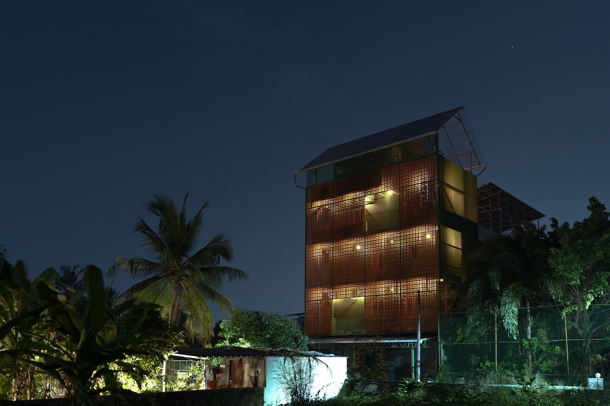 Nestled just 5 minutes away from the bustling Vytilla Junction, Sudama Cityscapes offers the perfect blend of city energy and tranquil retreat. What sets us apart is the serene escape we provide – a hidden paradise. Our contemporary space is not just a place to stay. Every corner of the apartment has been thoughtfully designed and filled with art that tells a story. The charming terracotta-clad exteriors to the warm, wooden-finish interiors and not to forget - a fruit tree garden & terrace!