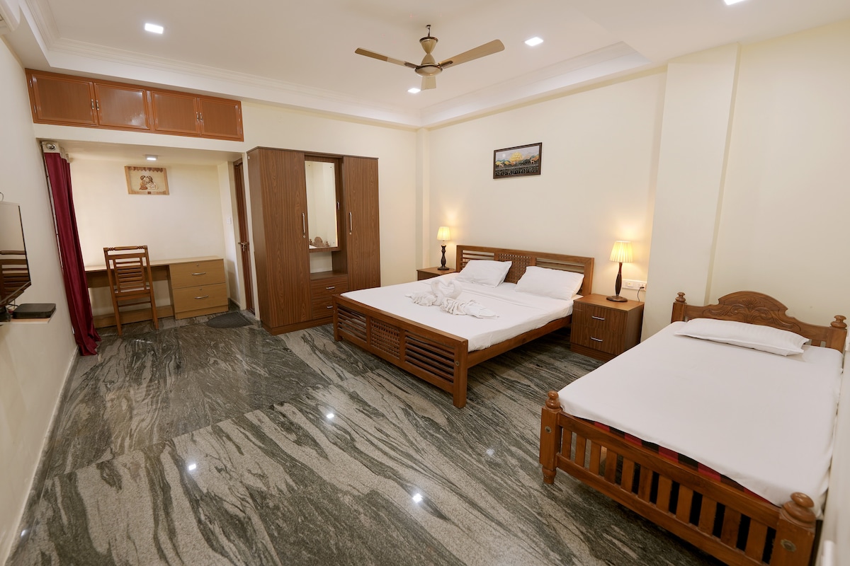 Our Deluxe Family Rooms are spacious and well-appointed, accommodating up to 4 adults comfortably. Experience modern comforts, tasteful decor, and a relaxing ambiance, making it an excellent choice for families exploring Kochi.