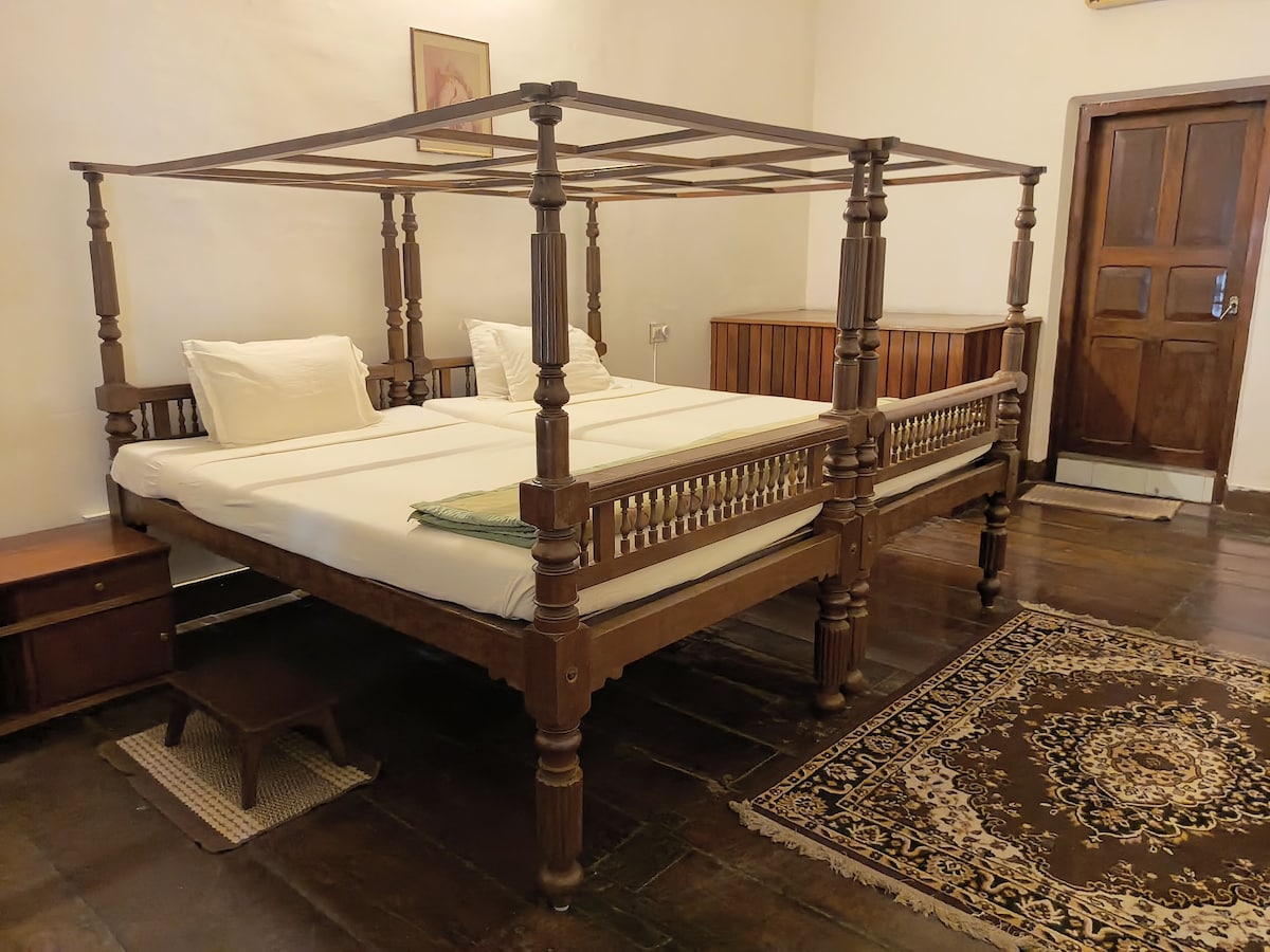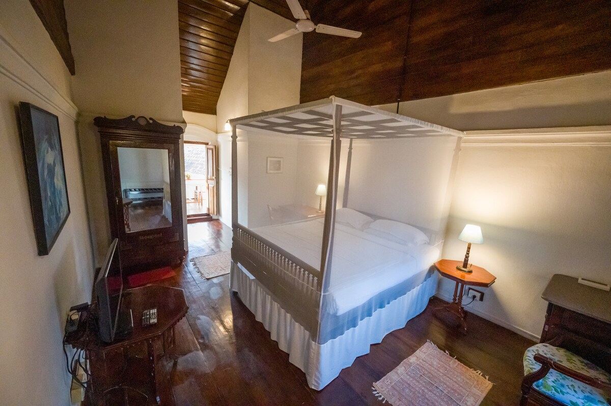 You won’t want to leave this charming, one-of-a-kind place. 18th century heritage Dutch bunglow facing Iconic Aspin wall (hosting world famous Biennale arts festival) super fast WiFi palatial AC room with 2 queen beds and private bathroom facing kochi harbour in house organic veg and non veg food options wooden flooring, antique furniture in the heart of fort kochi. watch the Chinese fishing nets for Live catch watch kathakali in Fort kochi every day at 6pm . happiness is contagious ❤️