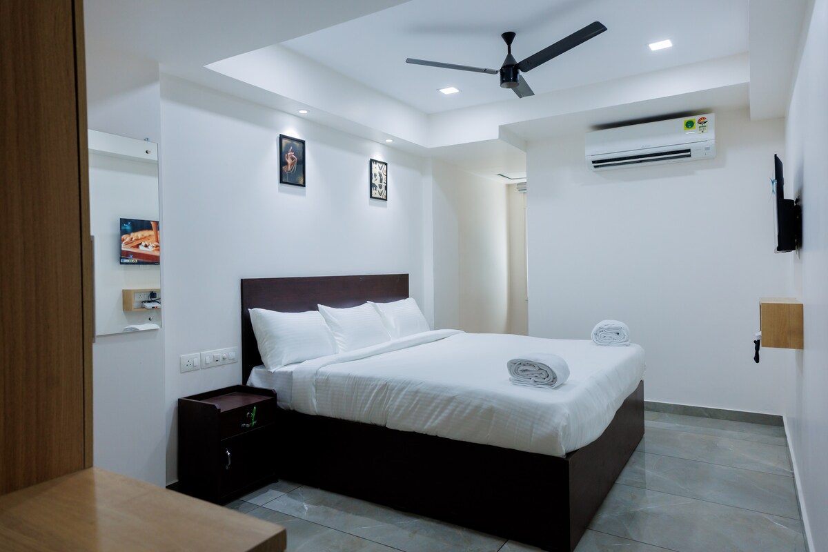 Discover affordable luxury in the heart of the city. Experience comfort and elegance in our clean, white-themed rooms designed to provide a serene and productive environment. Enjoy modern amenities, exceptional service, and unbeatable convenience, all at an affordable price. Whether you’re here for sightseeing, shopping, or business, we'd love to host you in this newly built hotel. Walking distance from Medical Trust Hospital, VFS Global (visa office), Cochin Shipyard etc.