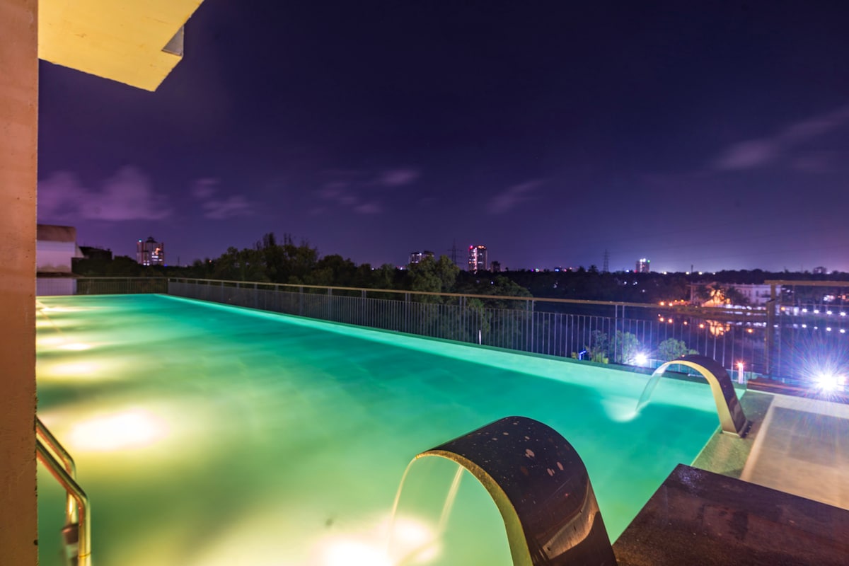 Enjoy a refined stay in this elegant 2BHK residence featuring spacious bedrooms, a large living area, and a kitchen with basic utilities for your convenience. The property offers a 3,000 sq. ft. indoor recreation zone and a private rooftop pool, perfect for leisure and relaxation. Centrally located for easy access to major attractions. Please note: sound restrictions apply to outdoor areas after 10:30 PM.