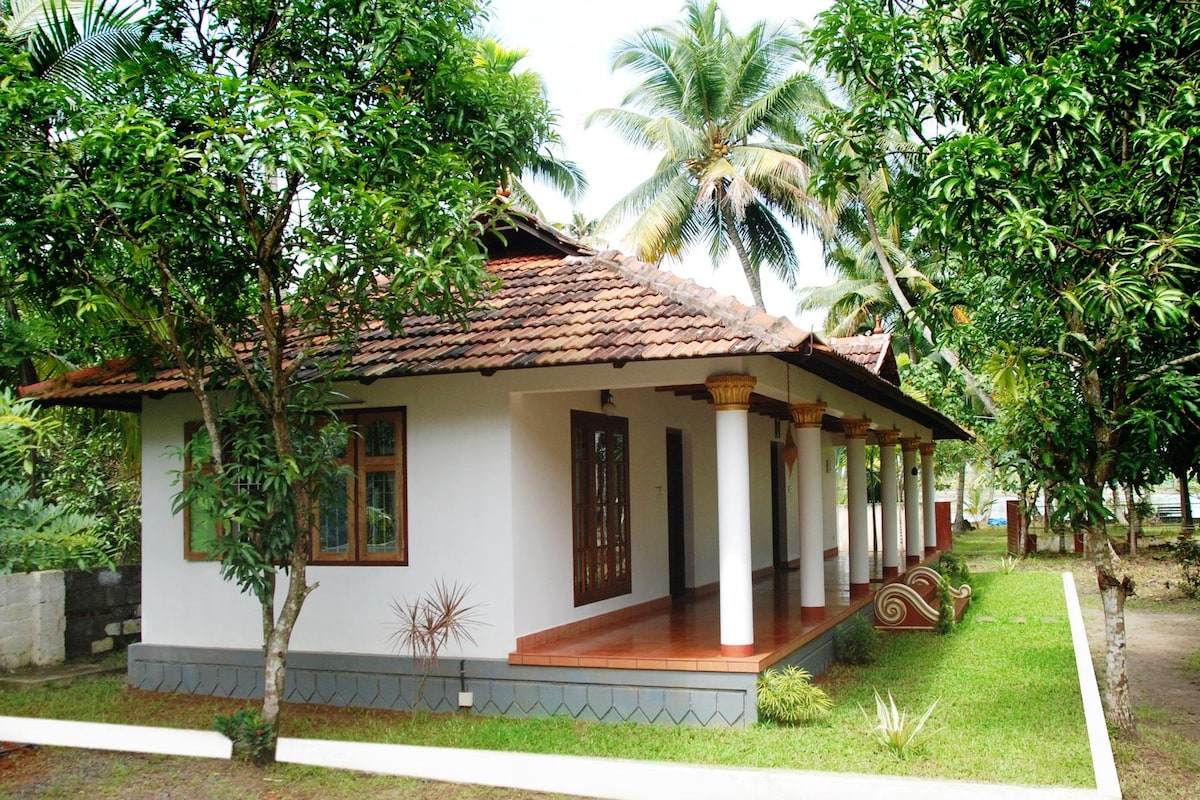 Entire villa Available . Except All Rooms. Room Allotment As Per Number of Guest. Each Room Accommodate 2 Guest. .At a time Accommodate Only 1 Group.Early Check in and late Check out Available According to vacant, without Any Extra payment below than 2 Hour. more than 2 Hour we Will Charge Extra Payment According to Time. Experience pristine Kerala nature, and village culture in this quaint riverside villa yourself or with your close ones! Approved From Kerala Tourism Department.Gold House.