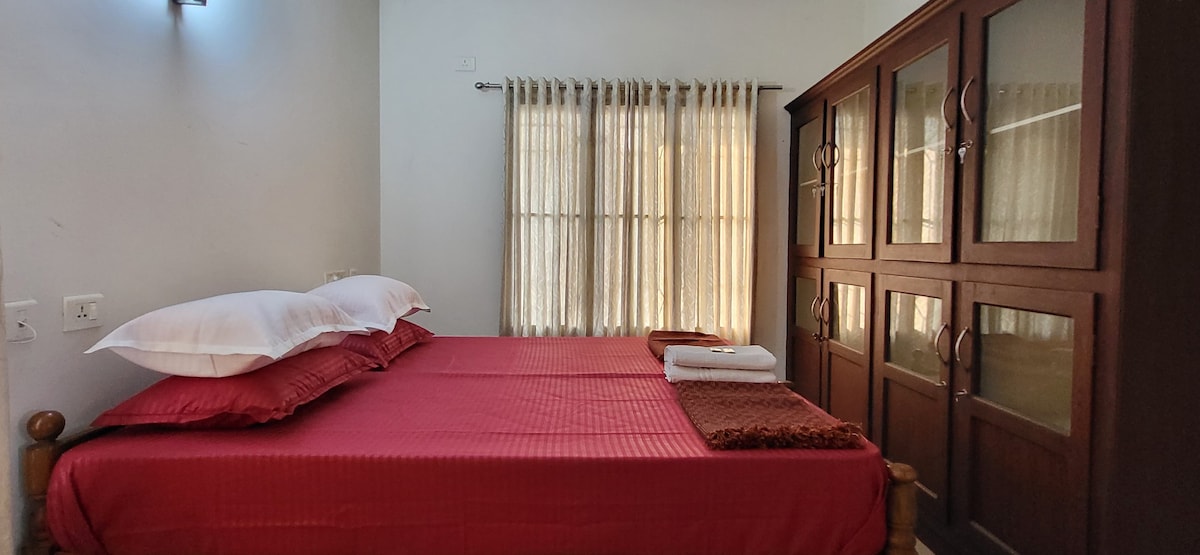LAST-MINUTE DEALS ACTIVE! Unwind in this peaceful riverside 3BHK apartment in Aluva, surrounded by greenery, calming water views and a sprawling landscape. Just 20 minutes from Cochin International Airport, it’s an ideal stop for travellers heading to Munnar, Athirappilly, Guruvayur, or other locations in Kerala. With easy access to the airport, railway station, and metro, this spacious home offers a relaxing and convenient base for your long and short stays in Kerala.