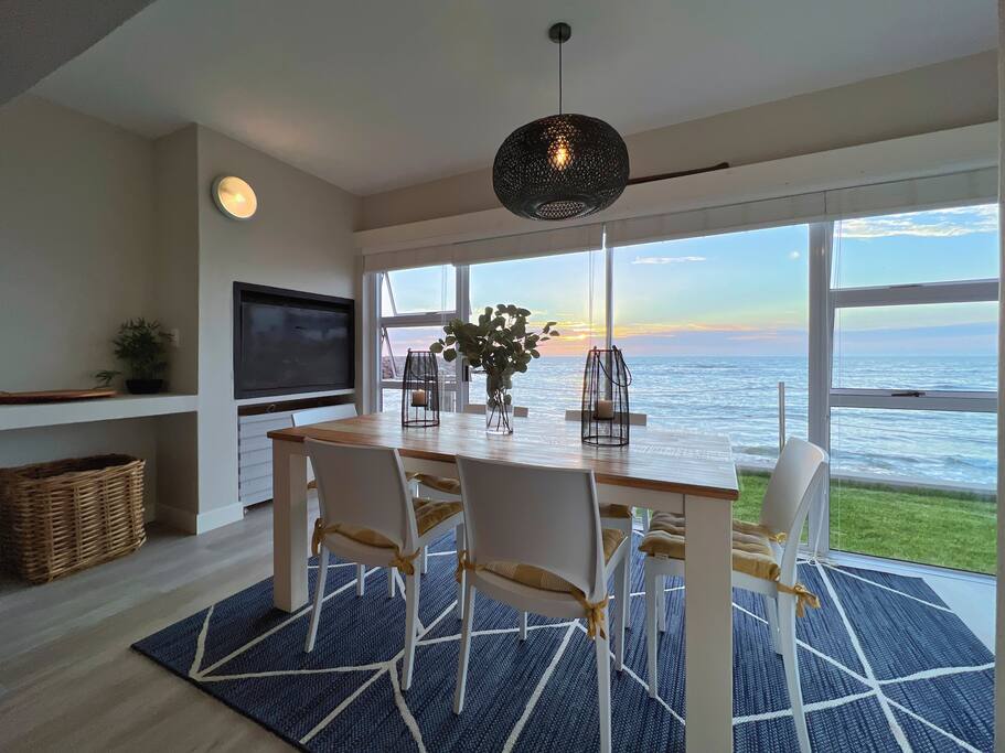 This self-catering contemporary style home is elevated by breathtaking ocean views. The layered texture of the sea inspired decor and the open plan entertaining area is perfect for your holiday next to the ocean.