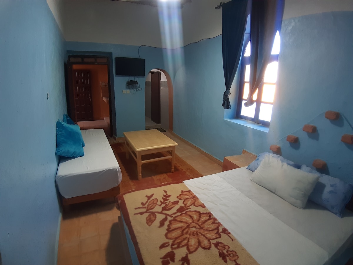 À quelques pas de la piscine de notre auberge, cet appartement cosy au style traditionnel est parfait pour un séjour authentique à Merzouga. Il comprend une cuisine équipée, une chambre confortable, un salon chaleureux et deux salles de bain pratiques. Bien qu’intimiste, il offre tout le confort nécessaire pour un séjour reposant. Profitez d’un cadre paisible et d’une ambiance unique au cœur du désert.