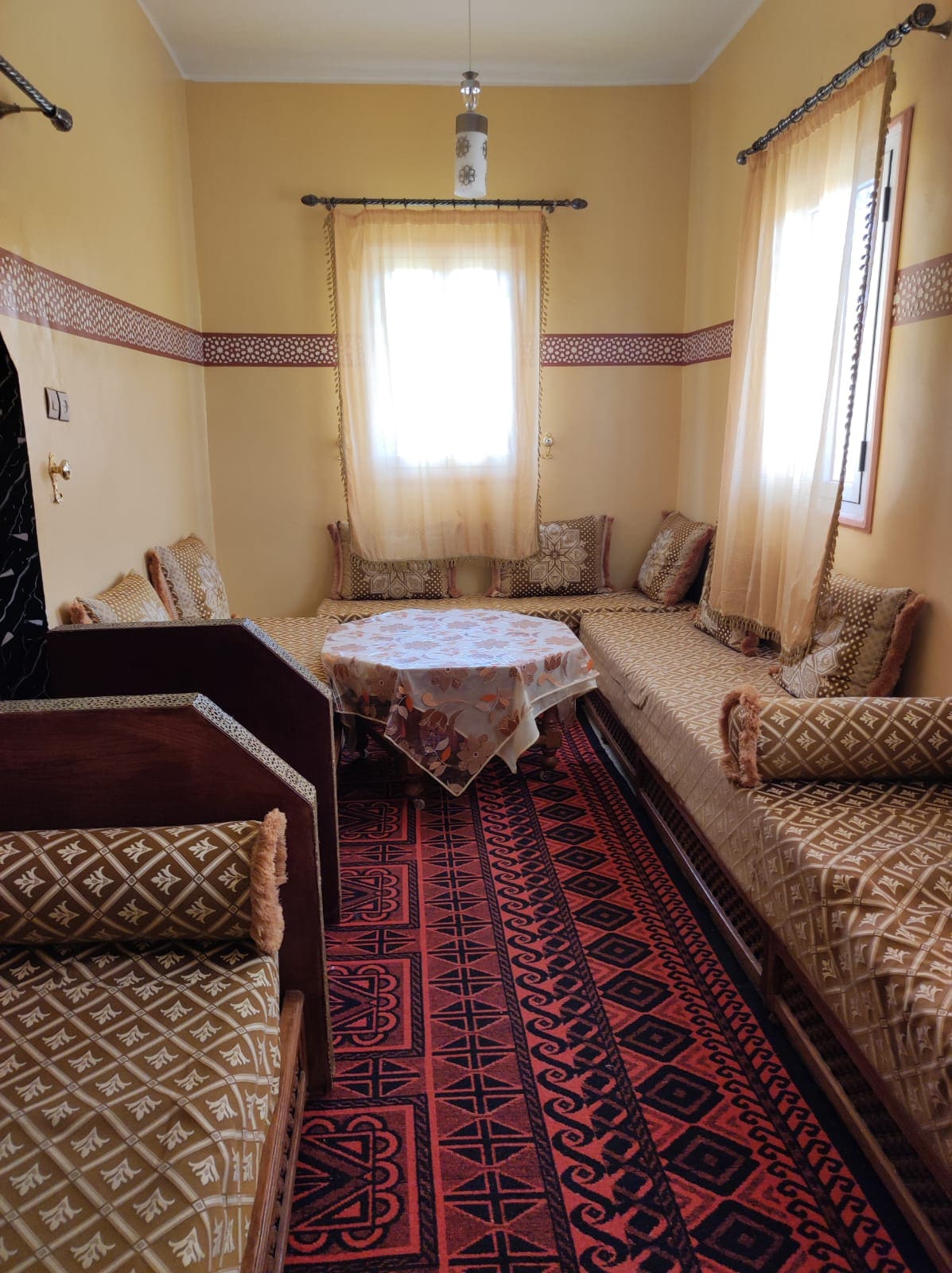 Bienvenue dans ce beau appartement de 130 m² au cœur d’Errachidia ! Spacieux et lumineux, il offre 2 chambres doubles, 1 chambre simple avec bureau, 2 salles de bain, une salle à manger et un salon au style chill et cosy. À quelques pas de la gare routière, du souk et des commerces. Profitez du transport gratuit depuis l’aéroport 🚗✈️ Confort et emplacement idéaux pour familles, amis ou voyageurs d’affaires.