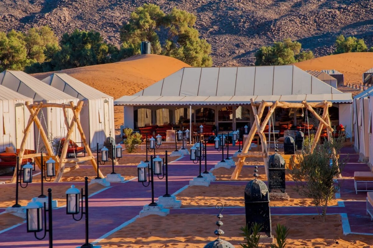 Bienvenue dans notre retraite exquise dans le désert au cœur de Merzouga, où vous découvrirez la magie du Sahara dans un confort et un style ultimes. Que vous recherchiez une escapade romantique, une aventure entre amis ou une escapade paisible, notre camp de luxe dans le désert vous promet une expérience inoubliable.