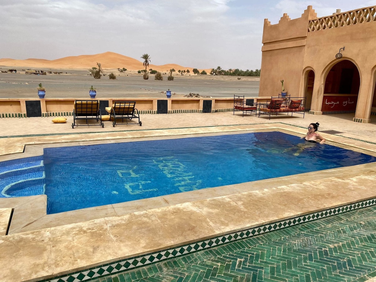 Discover Riad Nezha, a charming traditional riad in Merzouga, Morocco — just steps from the stunning Erg Chebbi dunes. Featuring 8 comfortable rooms for up to 22 guests, our riad blends authentic Moroccan style with modern comfort. Enjoy a relaxing pool, terrace views, local cuisine, and warm Berber hospitality in the heart of the Sahara Desert.