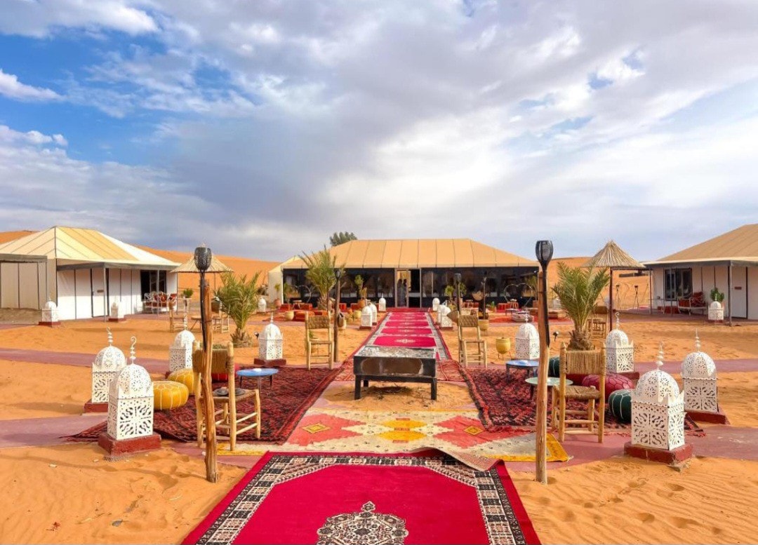 Merzouga Horizon luxury Camp with Our luxury tents offer modern comfort with traditional Berber charm, complete with en-suite bathrooms and stunning desert views. Enjoy camel rides, 4x4 tours, and magical evenings under starry skies. Experience the perfect blend of adventure, culture, and relaxation.