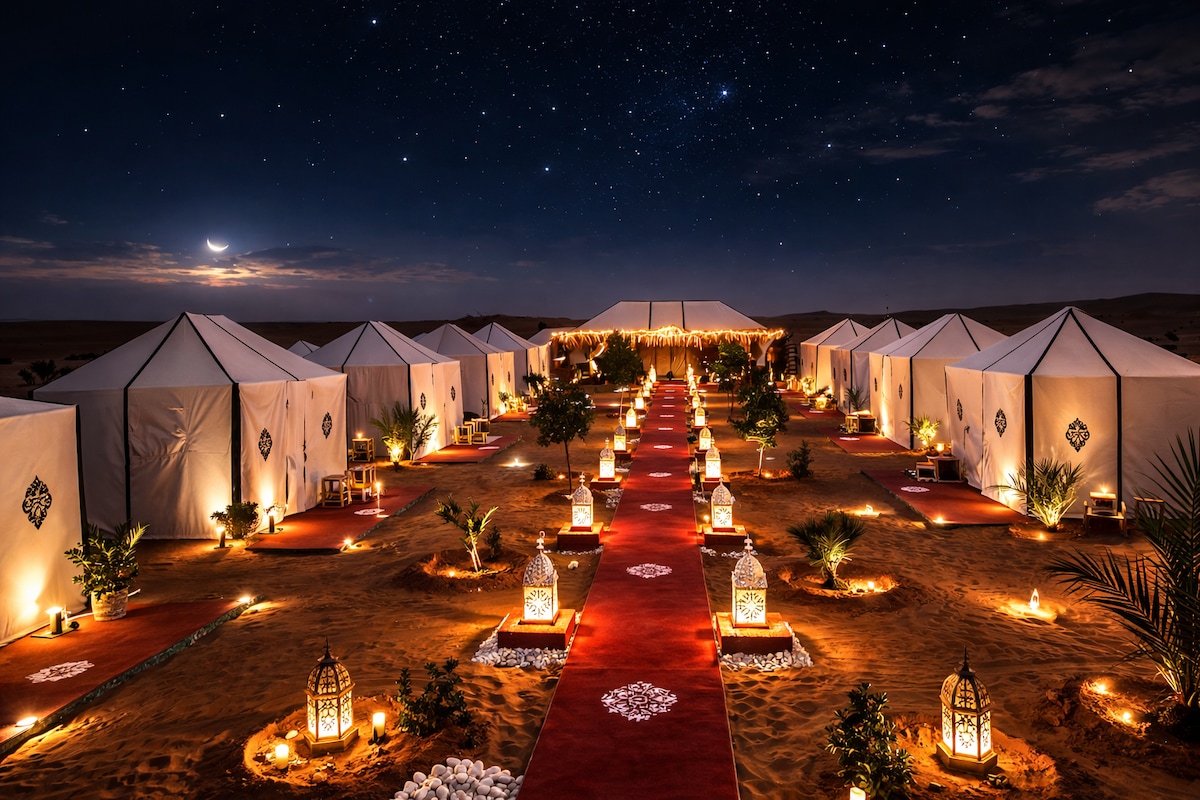 Escape with your loved one to the heart of the golden desert and experience unforgettable magical moments! 🌵✨ Luxury tents fully equipped for comfort, delicious cuisine, and romantic sunset vibes. Stroll among the sand dunes, relax under a star-filled sky, and let the desert fill your hearts with tranquility and wonder. ❤️