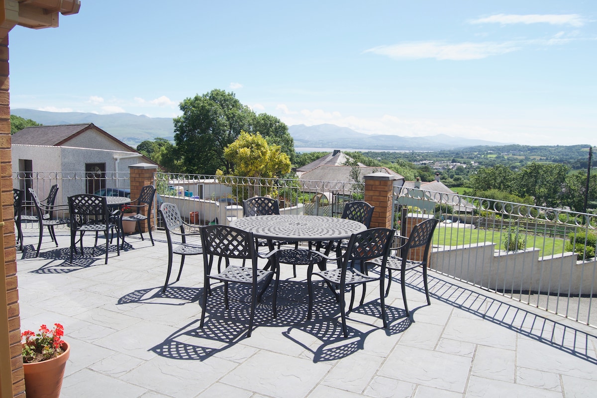 Enjoy a relaxing break away from it all in our dreamy Snowdonia Den. A delightful 1st floor, light and airy self-catering studio apartment between the villages of Rhosgadfan & Carmel. Surround yourself with panoramic views of the mountains and coastline from your own private garden. Ideal for a romantic break or a de-stress getaway. Far enough away from the crowds to feel remote, but within easy access of the villages & towns of the Llyn Peninsular and surrounding areas. Recharge and revive!