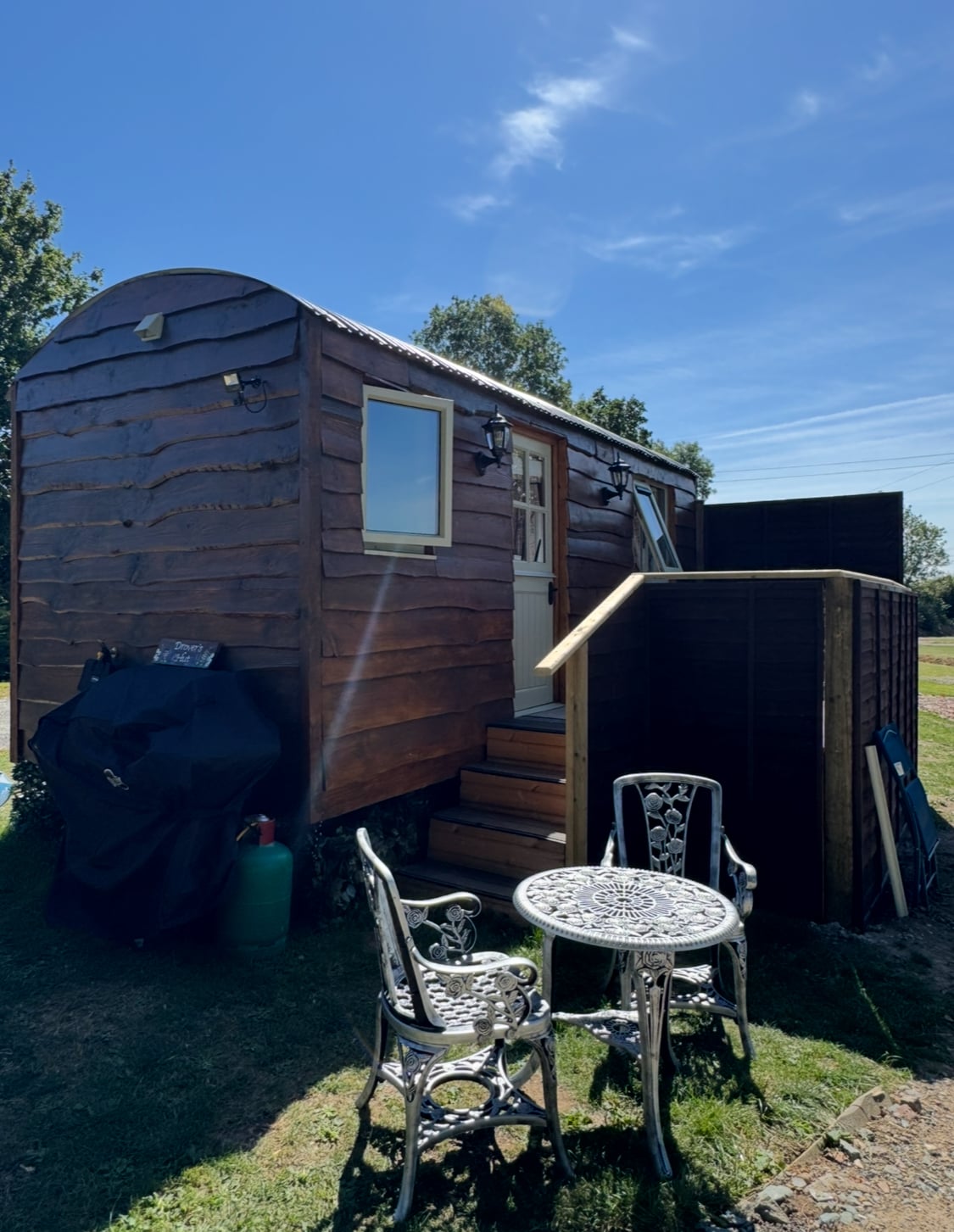 Experience the country in luxury, in a quiet setting overlooking the fields with the sea in the background, turn around and look at the rolling hills behind you. Listen to the stream that runs by the hut while sipping your favorite wine, in the hot tub with a book in hand. Come and enjoy a romantic getaway with your partner or a peaceful break away from the hustle and bustle of life. This shepherds hut offers you the comfort of home in a tranquil setting forget your busy life and breath.