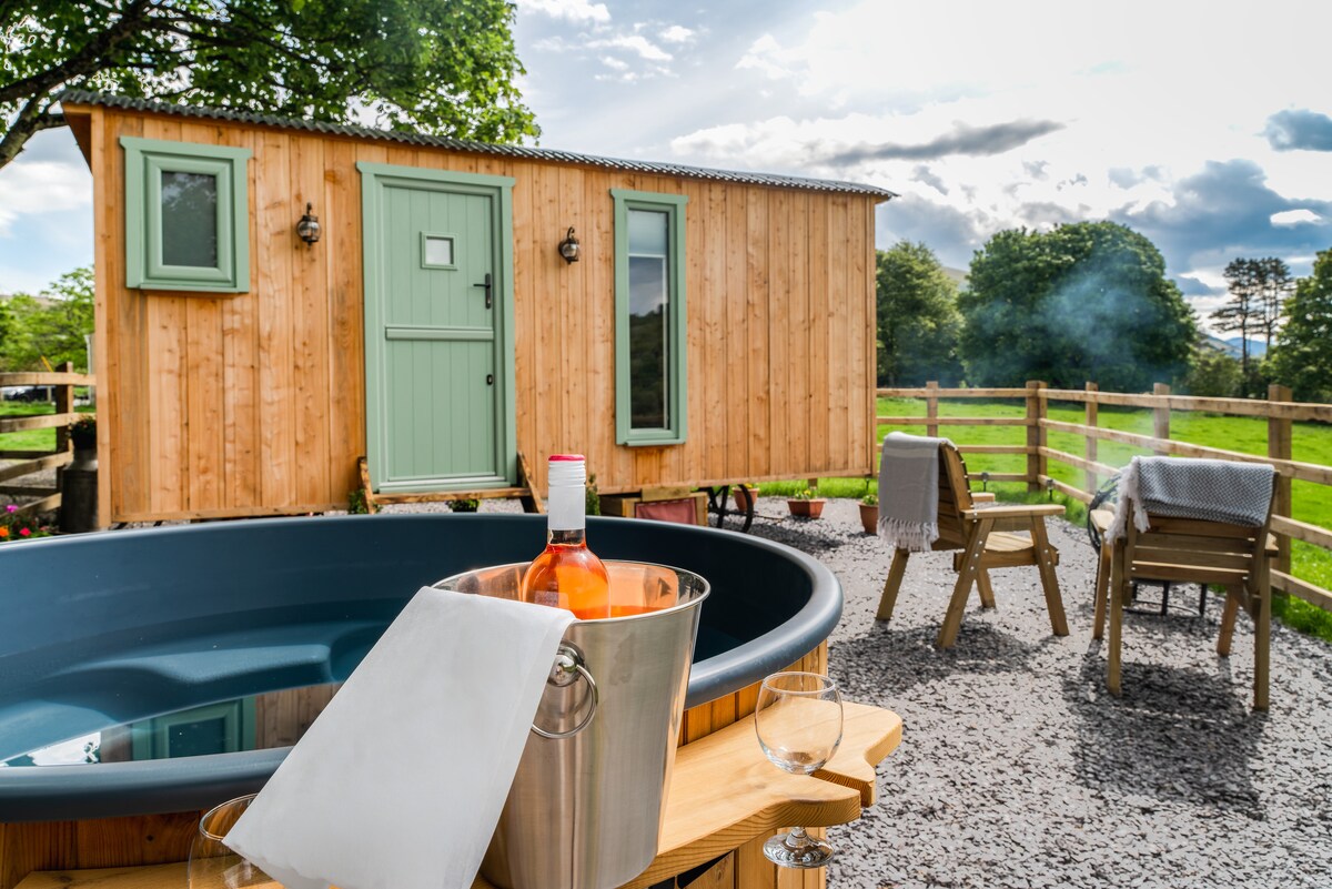 豪华牧羊人小屋、热水浴缸和景观!