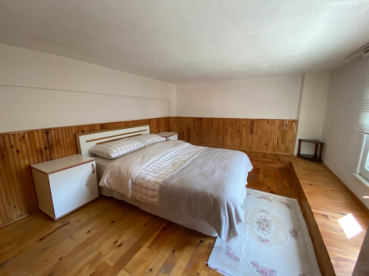 Bu mekanda geniş bir dairede toplam 3 yatak odası 1 oturma alanı 1 mutfak ve 2 banyo mevcut geniş aileler için özel yaşam ve uyuma alanları olan ferah ve güvenli bir dairedir. Toplam yatak kapasitesi bakımında. Bölgenin en geniş dairelerinde. Birisidir. Aynı zamanda nehir ve doğa manzaralı bir balkonu vardır. Tam donanımlı bir mutfağı ile uzun süreli konaklayacak olan misafirlerin kendilerini evlerinde hissedebileceği güvenli ve huzurlu bir mekandır. Kablosuz internet bağlantısı mevcuttur.