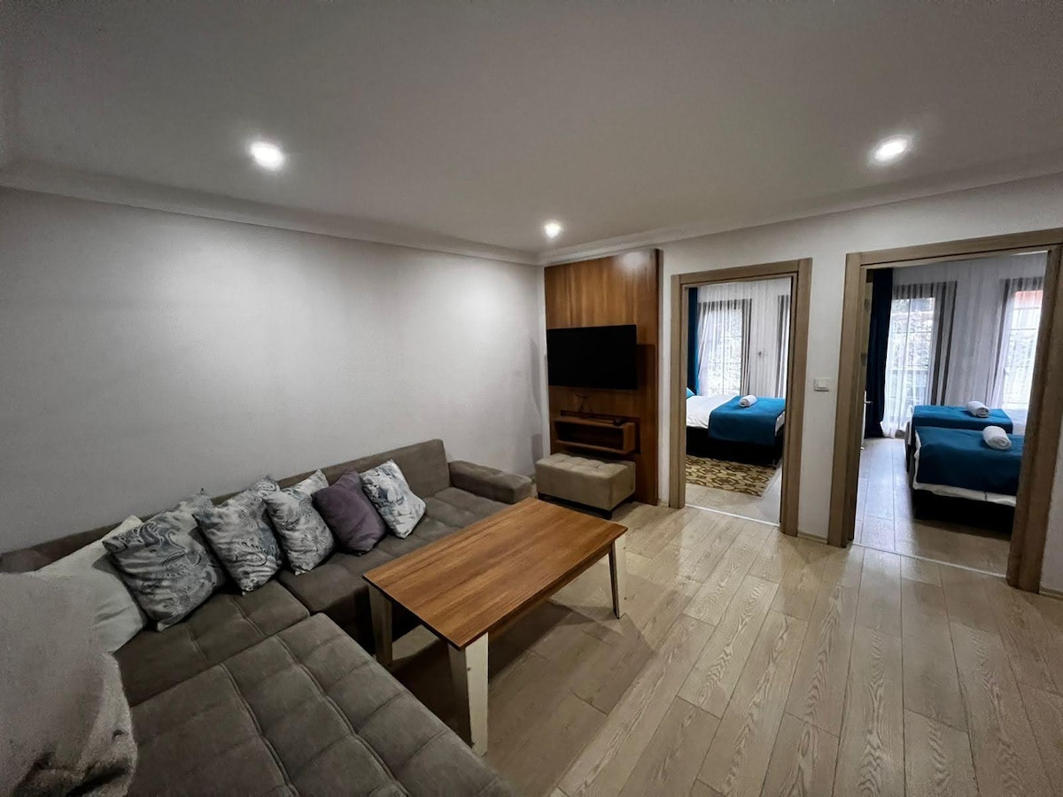 Bu büyüleyici ve lüks konaklama yerinde her ayrıntı düşünülmüştür. “Vadi manzaralı 125 m² modern apart: 1 ensuite çift + 3 tek kişilik yatak odası, salon, mutfak ve 2 balkon. Uzungöl’e 6,5 km. Aktivite alanları 5 dk: zipline, salıncak, atış poligonu ve inşa sapanı. Dere sesi eşliğinde doğada ferah, huzurlu ve keyifli bir tatil sizi bekliyor.”