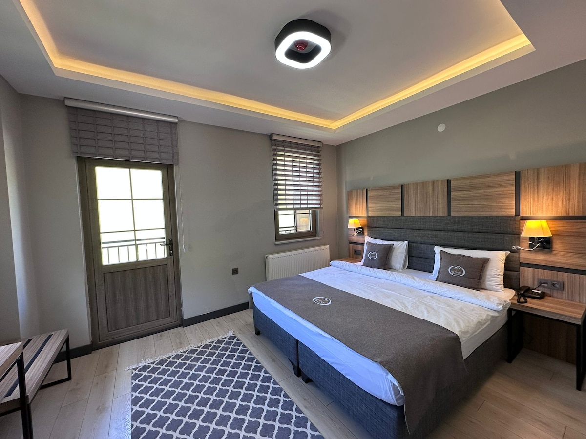 Ekonomik Oda, sizlere huzurlu bir dinlenme alanı sunuyor. Zemin parke ile sıcak bir atmosfer yaratan bu odada, günün yorgunluğunu atarken kendinizi evinizde gibi hissedeceksiniz. Saç kurutma makinesi, su ısıtıcı, plazma/LCD TV ve uydu yayını gibi modern olanaklar, konforunuzu artırmak için titizlikle düşünülmüştür. Kablosuz internet (Wi-Fi) ile sevdiklerinizle bağınızı koparmadan keyifli anlar yaşayabilirsiniz. Terlikleriniz ve buklet setinizle birlikte, her şey sizin konforunuz için hazır!