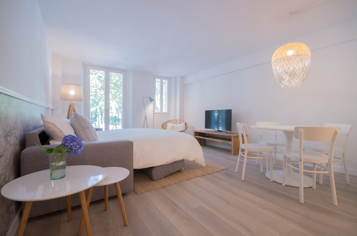 MARsuites 1 is a bright and cozy accommodation unit perfectly located at one of the most beautiful streets in Old Town, in front of Almudaina Royal Palace. Maximum capacity 2 adults and 2 kids under 15. It belongs to MARsuites, an Old Town building recently renewed with 4 accommodation units with lift. MARsuites 1 has been designed and decorated with a cozy taste to offer a comfortable place to stay. It has a little balcony from where you will enjoy amazing views over the Palace and Cathedral.