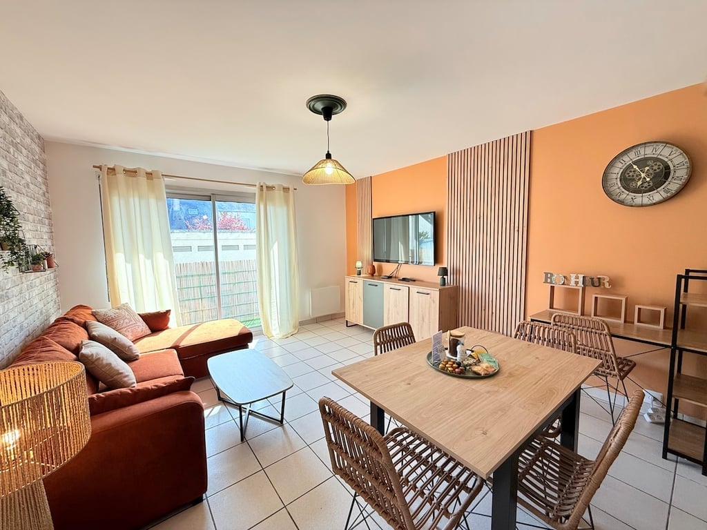 Our apartment is perfectly situated in Petit Maroc, the oldest neighbourhood in Saint Nazaire. From the living room, you can watch the canal lock in operation and the boats (boat movements). You can get to all the tourist attractions of the city, the beach and heart of the city, Place du Commando, on foot or by bike. With a surface area of 40m², the kitchen area faces east, on the garden side and the living room and bedroom face west, with a clear view of the sea and the setting sun.