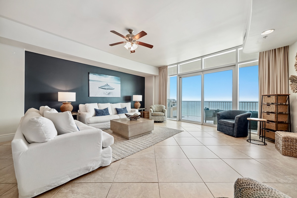 Newly renovated 2 bdroom 2 bath condo in Phoenix VI, sleeps 8. Perfect location with oceanfront views on 14th floor. This unit boasts impressive views of Perdidio pass, so you can enjoy watching the yachts from your beach front balcony. Bedroom 1 ( king bed) Bedroom 2 ( 2 queens) Sleeper sectional with pull out memory foam mattress. Amenities include (indoor/outdoor pool, sauna, fitness center, racquetball court, and tennis/pickleball courts) * $55 parking pass required at check-in.