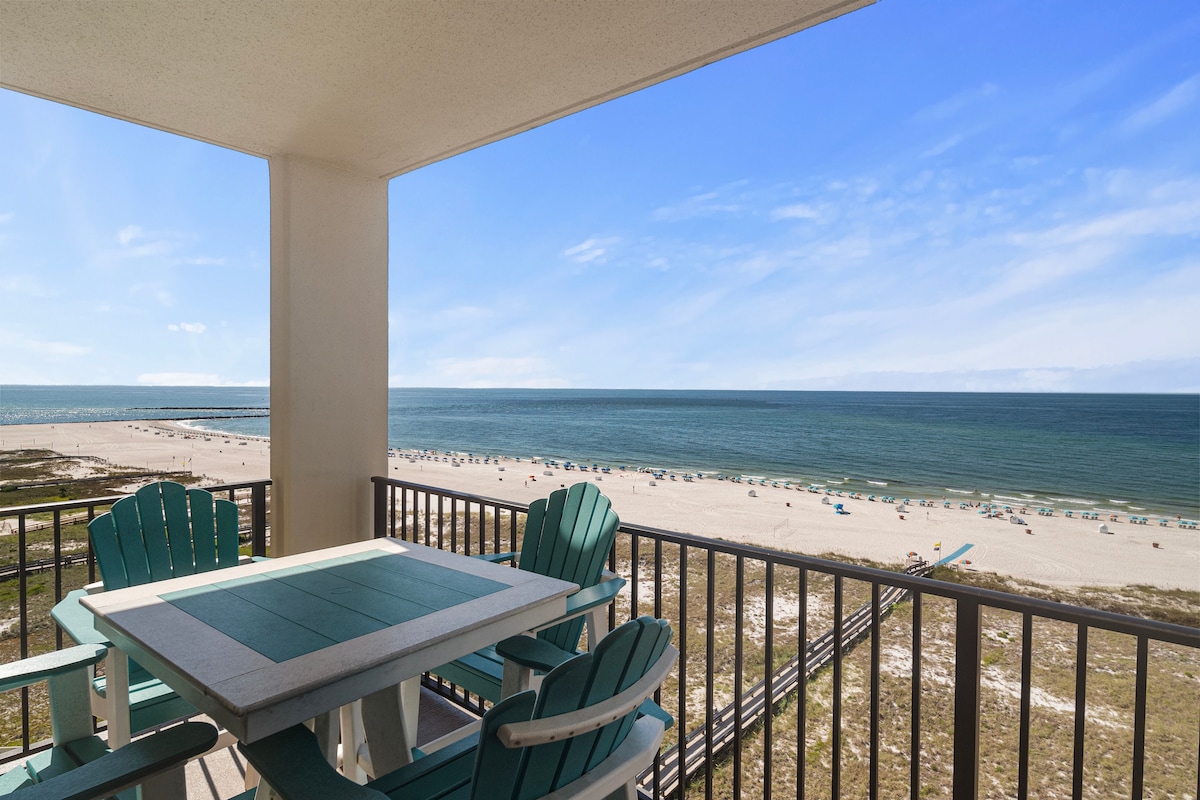 ASK about DISCOUNT rate for monthly stay in January and February 2026. DON'T FIGHT THE CROWDS for space on the beach! Unwind in our comfortable 4th floor Beach Front "Slice of Paradise" with private beach. The balcony offers unobstructed, gorgeous views of the Gulf and the beautiful white sands of Perdido Key. Soak up the sun as you kick back on the balcony and count the dolphins while being lulled by the sound of the waves and the salt air breeze. Recently UPDATED-New photos coming soon!