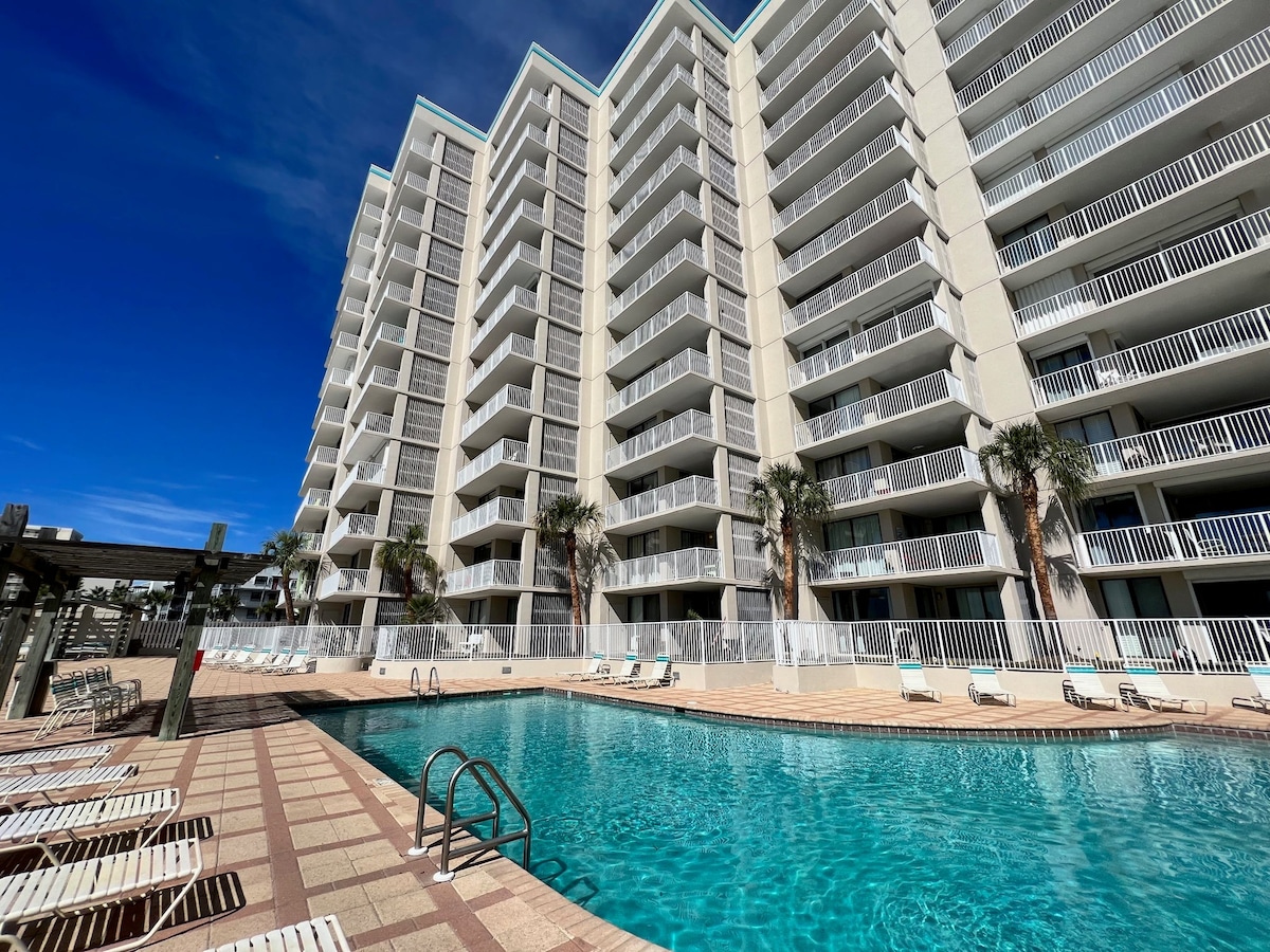 Enjoy your all-inclusive stay at the Wharf! From the beautiful 7th floor view overlooking the marina to everything you can possibly want on the bottom floor! Restaurants, shopping, movie theater, concerts, bars/entertainment, mini grocery store..you name it! Let's not forget the Oasis! Wave pool, lazy river, swim pool, kid slides, beach volleyball, and restaurant! With everything centrally located downstairs, you won't even need to leave! Only an 8 min drive to the nearest public beach!