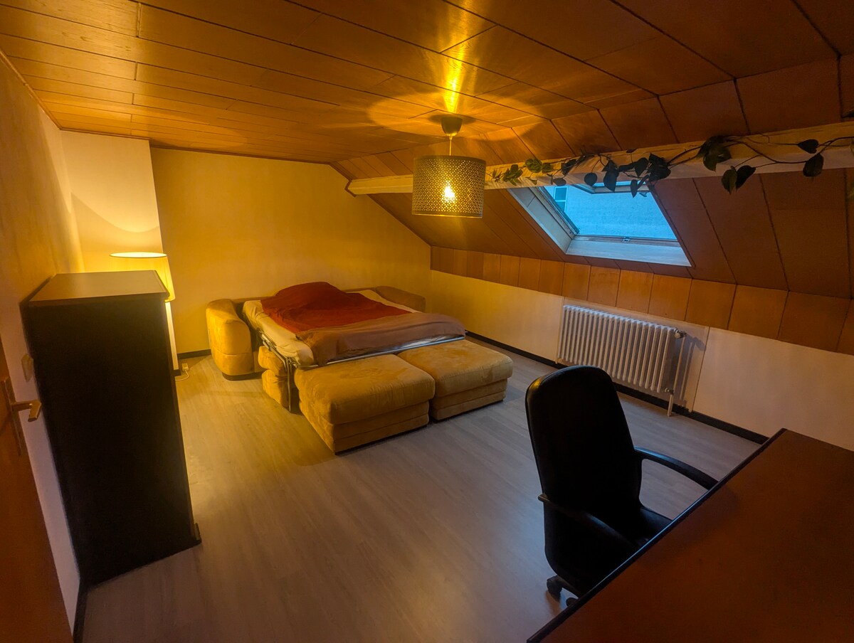 A cosy, charming studio ready to welcome you for your stay in Luxembourg! Located in Hesperange, a nice town in the Alzette river valley, surrounded by green spaces, just a short bus ride away from Luxembourg City. All the essentials are available (bed linen, towels, soaps, etc.), a sofa bed, an equipped kitchenette, and a bathroom with shower. Note that the attic is on the third floor, there is no elevator, and the access is via a narrow staircase that can be seen in the photos.