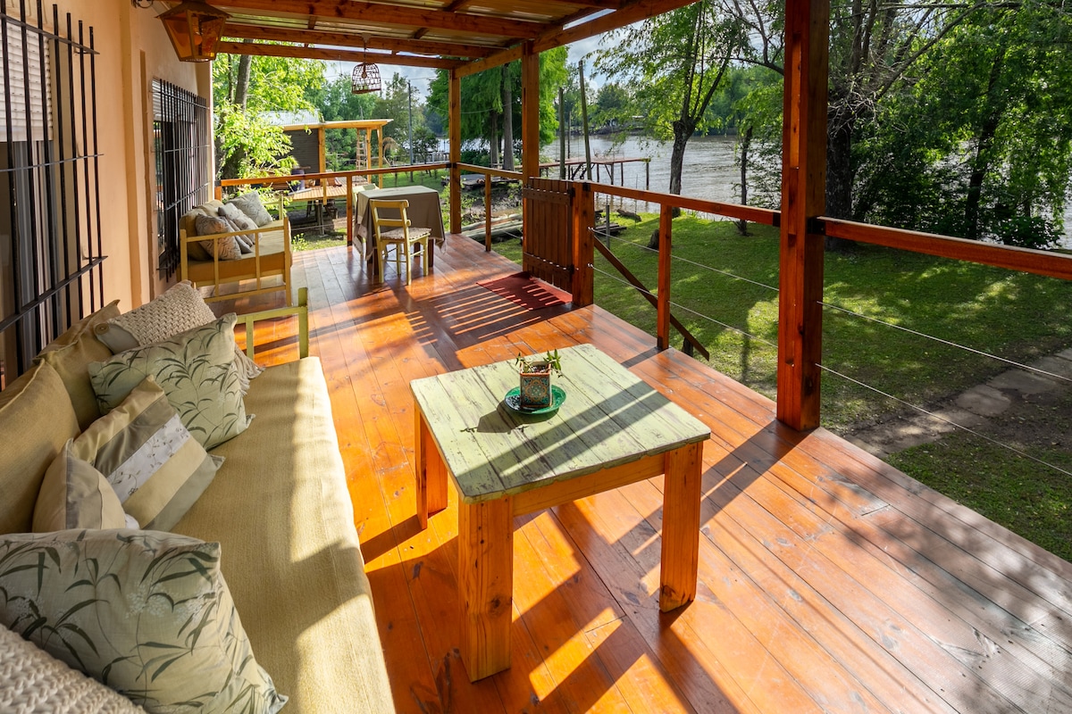 Beautiful house in the delta, very practical and comfortable, fully equipped, 700 meters from the mainland, 5 minutes of very relaxing navigation in a transfer boat included in the price. Located within the closed nautical neighborhood Aldea Del Lujan. Ideal for family time surrounded by nature, but if you need to work, we also have Wifi available. An excellent place to rest from the city while being just a few minutes away, 5 minutes from Villa La Nata, Nordelta, and 45 minutes from CABA.