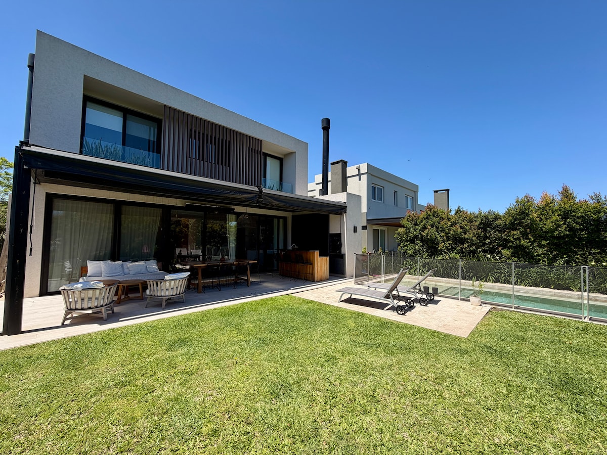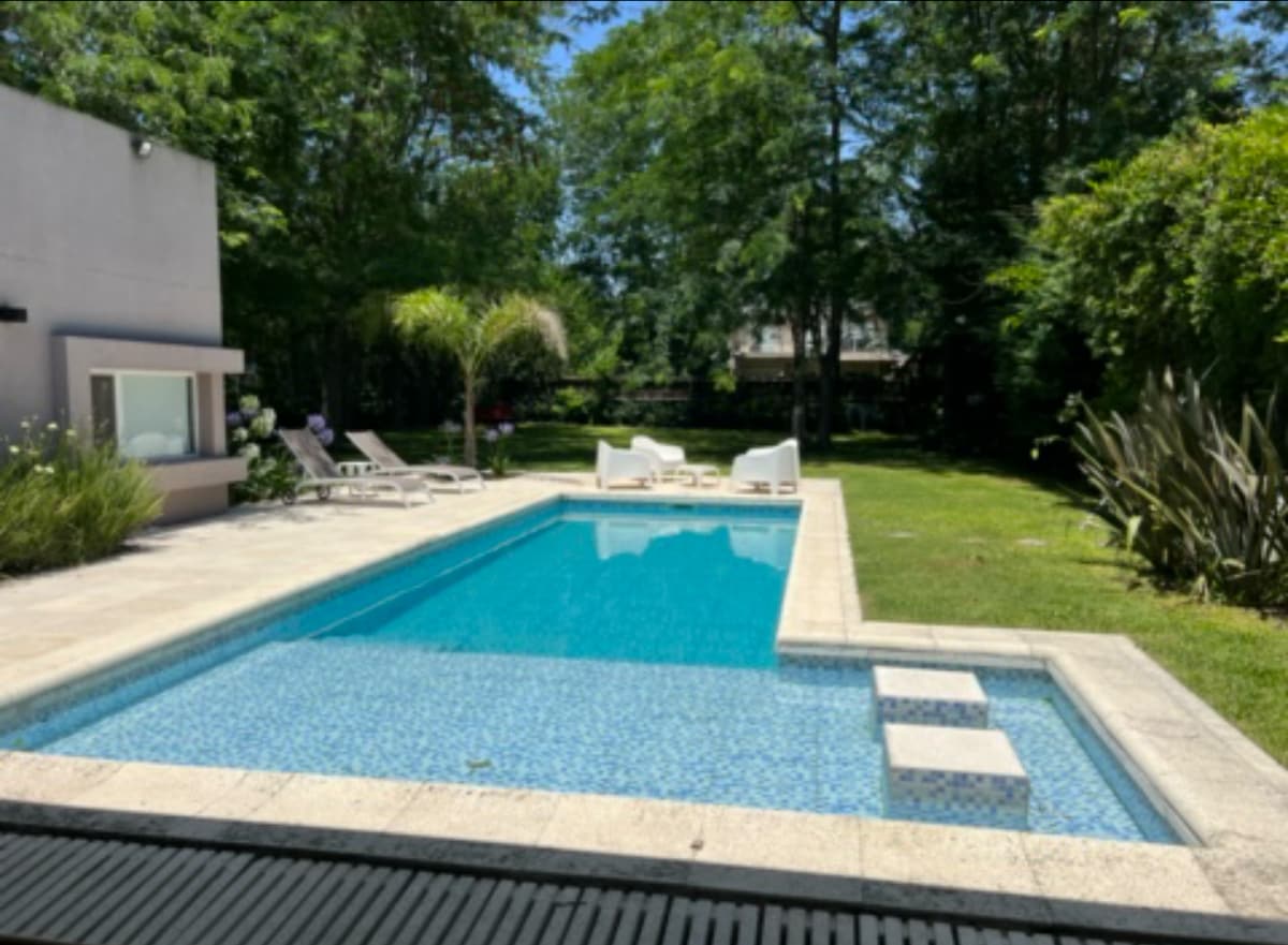 Casa en exclusivo country , con parque de 2000 mts cuadrados,con pileta quincho rodeado de jazmín del país, parrilla ,con increíbles galerías con vista al parque .a media cuadra del golf.la casa completamente equipada para las 4 estaciones, cal. Central, aire acon . En todos los ambientes., la casa consta con living y comedor,3 cuartos,1 en suites con living tv smart con netflix vestidory baño, 2 baños más y baño de pileta con bañadera arriba otra cama sala de juego y biblioteca y terraza .