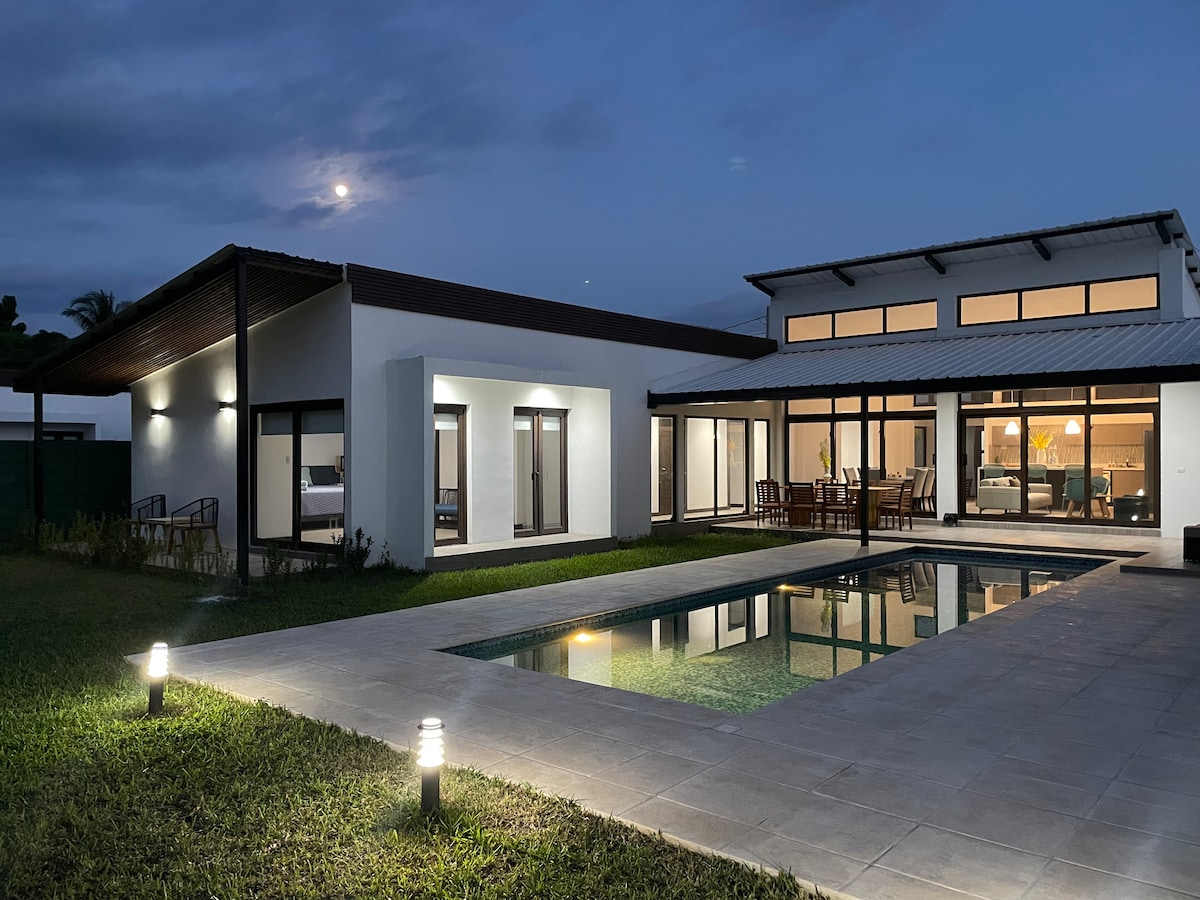 Con tu familia crea recuerdos inolvidables en esta casa en condominio seguro, con cocina moderna completamente equipada. Piscina privada grande con diferentes alturas para todas las edades, y múltiples sombrillas para tener sombra en la piscina. Acceso privado a la playa. Mesa de Ping-Pong, Juegos de niños y jardín de 500 metros para juegos al aire libre. Duerme cómodamente en 5 habitaciones con aire y TV, 16 camas en total. Parqueo para 4 carros dentro de la propiedad, más parqueos de visita.