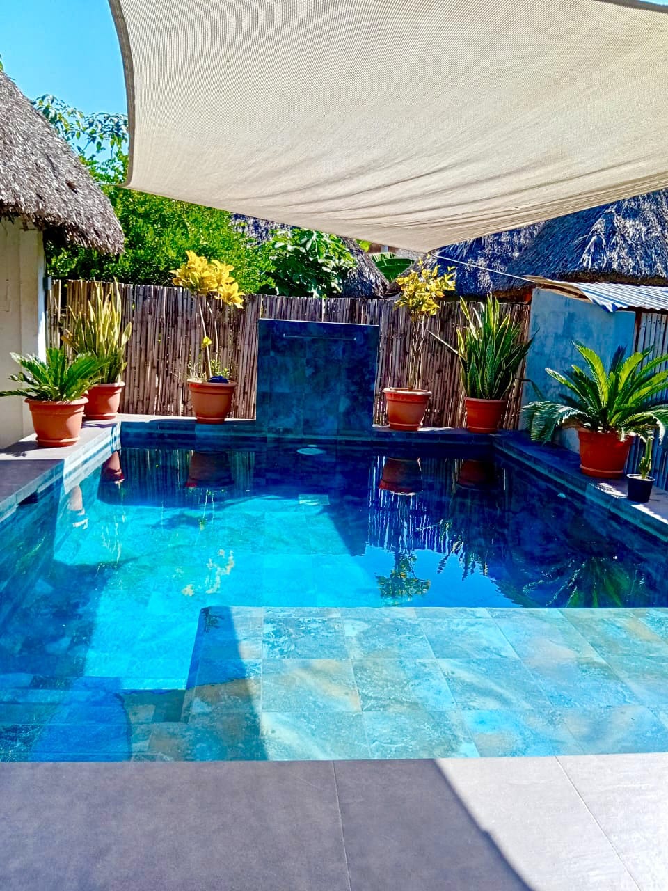 This simple mini apartment whit palm roof is located in front of the sea, on the second level. It is located at the back of a piece of land that offers another type of lodging. The pool is for shared use.*Construction in the surroundings