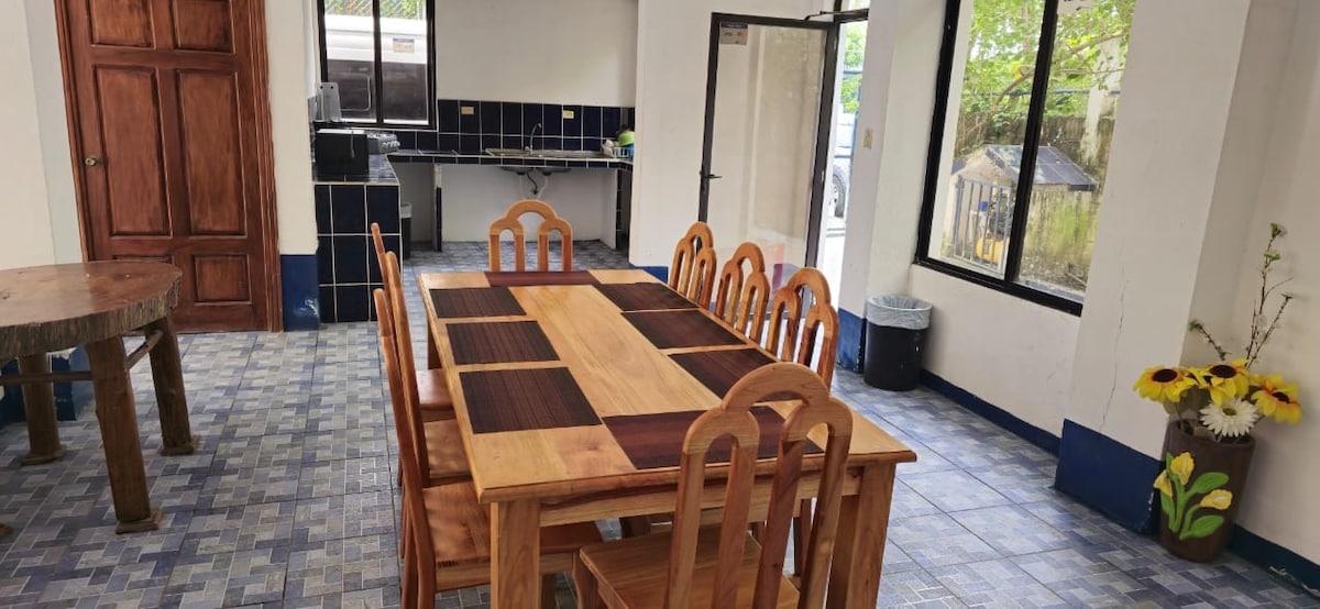 Relájate con toda la familia en este tranquilo lugar para quedarse. La casa está equipada con todo, aparte de ser una casa amplia, cómoda, y linda. Es para 12 personas, tiene piscina, parqueo hasta para 3 carros, entre otras cosas más. Mascotas permitidas con tarifa adicional (50 Q por mascota).