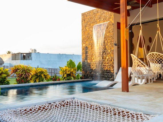 Place to relax and chill, with four distinct houses that represents each one of the elements: fire, wind, earth and water. Each house is complete with two bedrooms, one bathroom, kitchen, and a small pool that connects to the living area. All surrounded by a wooden deck and plenty of nature. An outdoor shower, yet private surrounded by nature to cool off from a relaxing day at the beach. *5 min walk to the beach* *Not Be Suitable for Children under 2 years old*