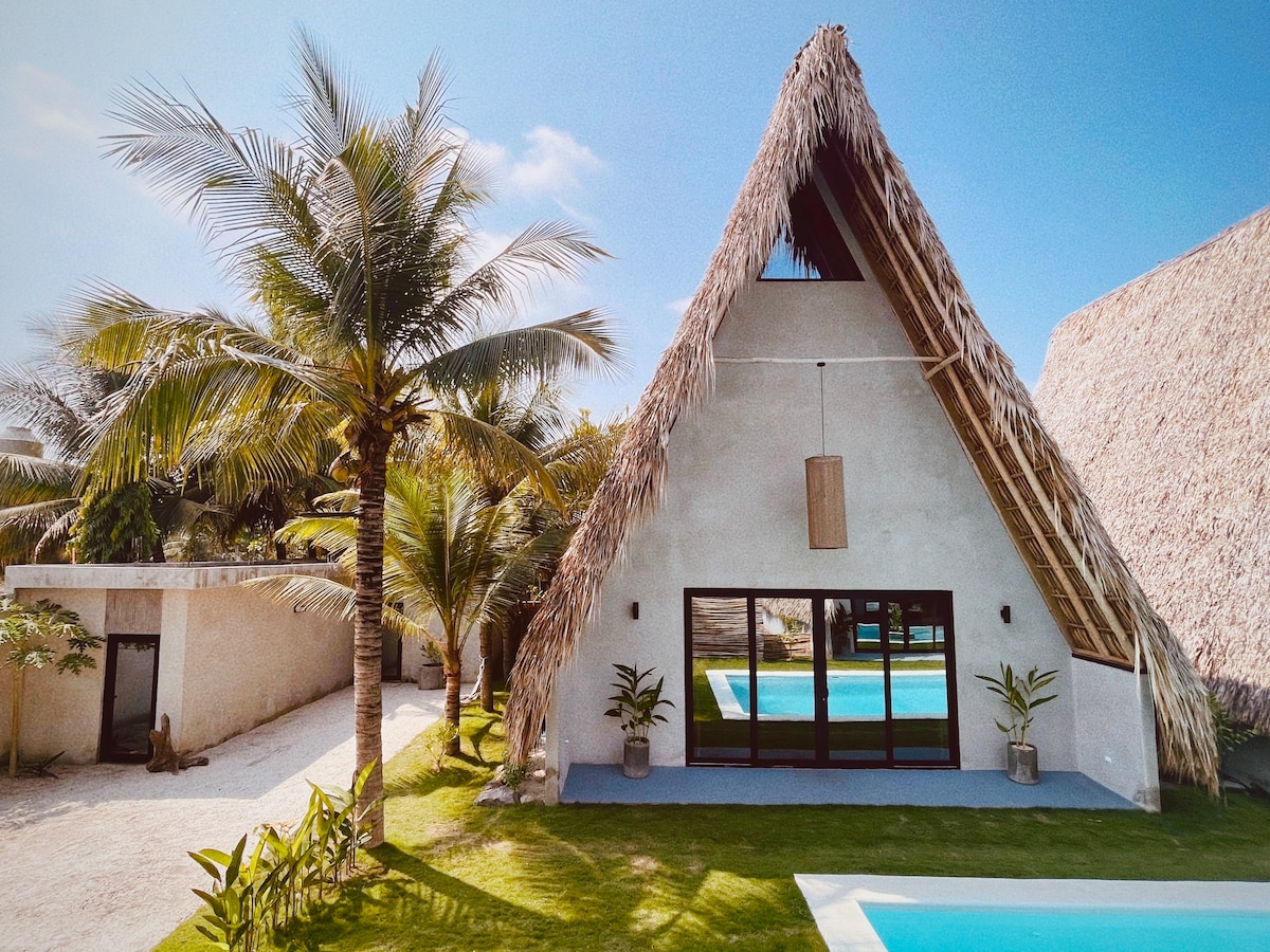 Escape to a romantic beach house with private access to the sea and an exclusive pool. The social area, combining a living room with ceiling fans and TV, dining area, and basic kitchen with an electric stove, opens to the outdoors, creating a perfect tropical ambiance. Directly in front of this area are the covered pool and tropical garden. Relax in the bedroom with air conditioning. Wi-Fi is available throughout the house. Ideal for couples seeking privacy and peace by the beach.