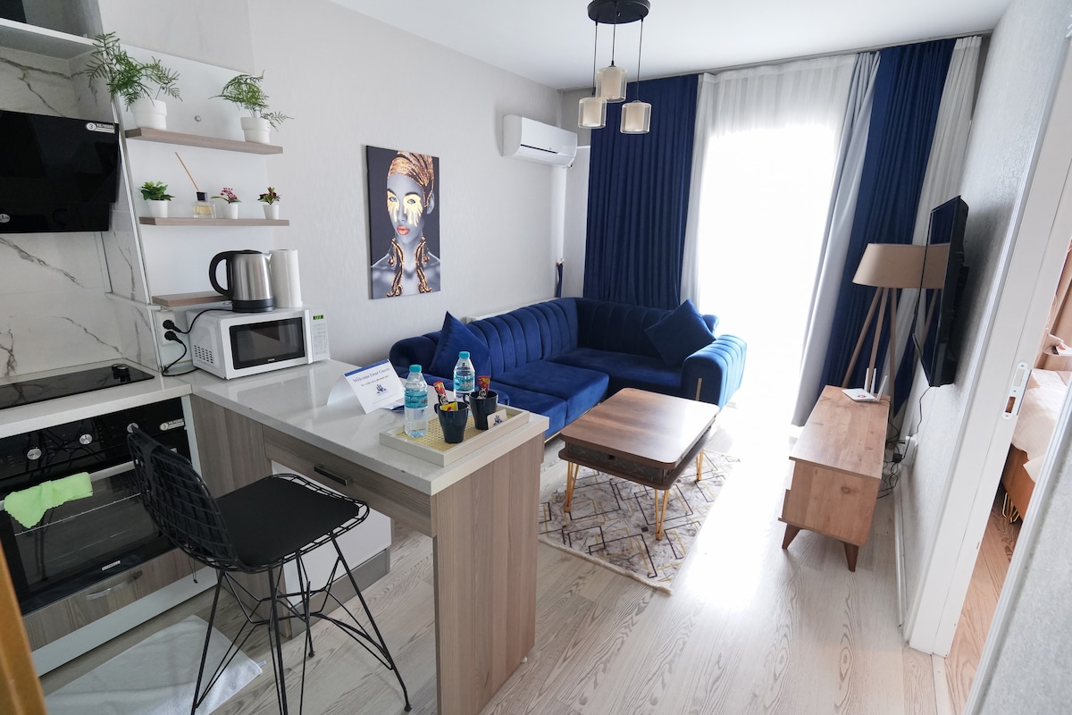 Modern furnished 101m2 (1+1)- Free Closed Parking garage. Our flat is tidy and lovely .In the flat there is 100 Mbps WiFi , Smart Tv includes many apps, Amazon prime account is active for our you to watch any movies or shows for free. For heating , or cooling there is heating pads , and Air conditioner , there is all materials at kitchen , Location is great you can find everything around , super markets , cafes , hospitals , restaraunts , Mall etc.. Everything well designed for you.