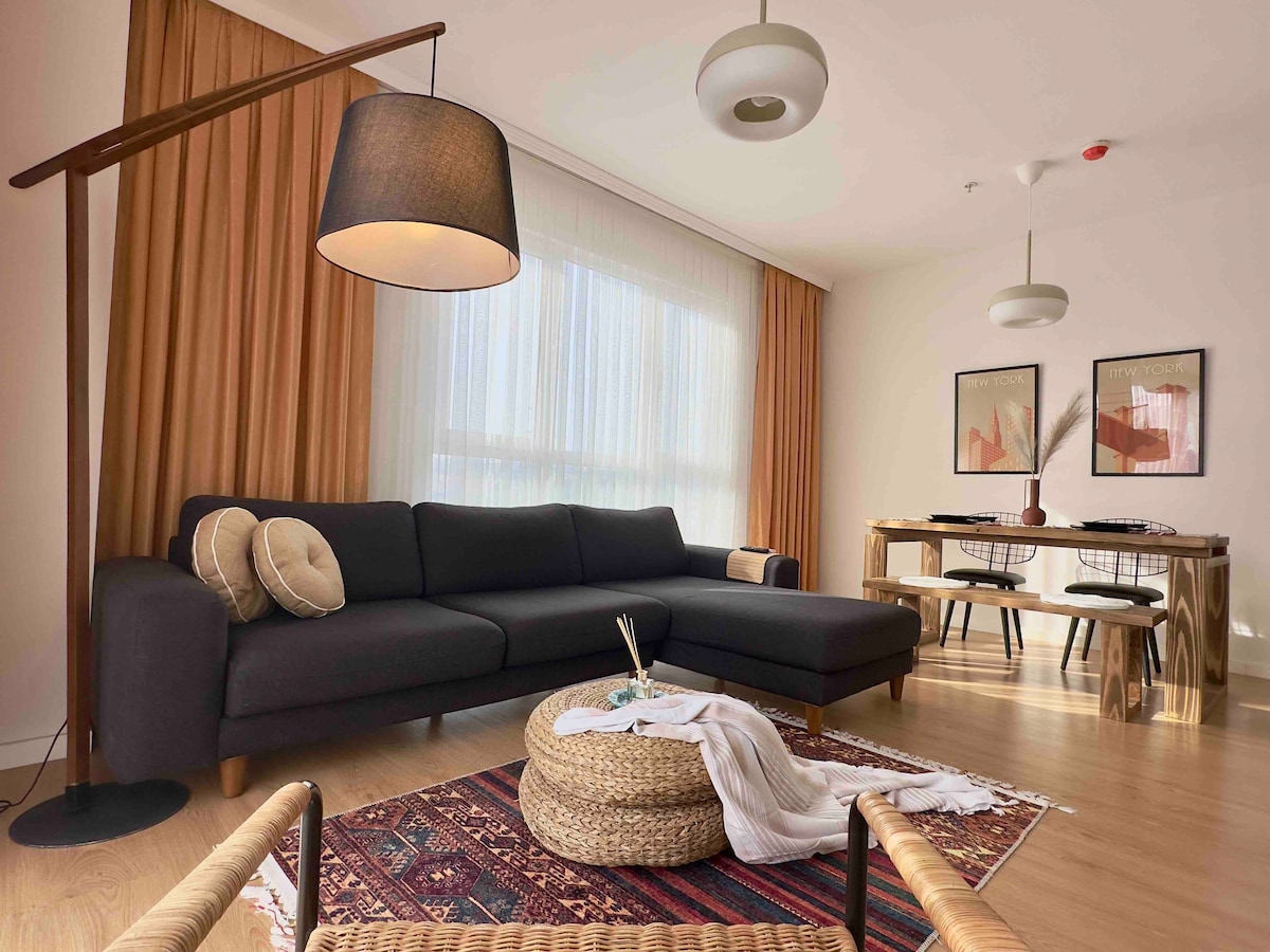 Modern furnished 101m2 (1+1)- Free Closed Parking garage. Our flat is tidy and lovely .In the flat there is 100 Mbps WiFi , Smart Tv includes many apps, Amazon prime account is active for our you to watch any movies or shows for free. For heating , or cooling there is heating pads , and Air conditioner , there is all materials at kitchen , Location is great you can find everything around , super markets , cafes , hospitals , restaraunts , Mall etc.. Everything well designed for you.