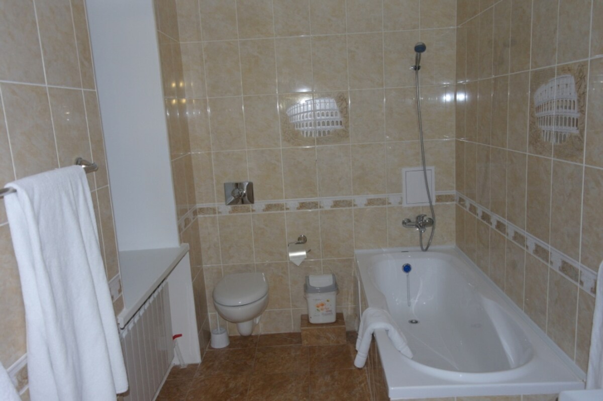 Уютный семейный номер с отдельной ванной комнатой. В комнате есть бесплатный wifi, кабельное телевидение, все ванные принадлежности. Cozy family room with ensuite bathroom. Room size 35 m² This air-conditioned room features a flat-screen TV. The bathroom includes a hairdryer, bathrobes and slippers. Free WIFI. Provides extra small sofa.