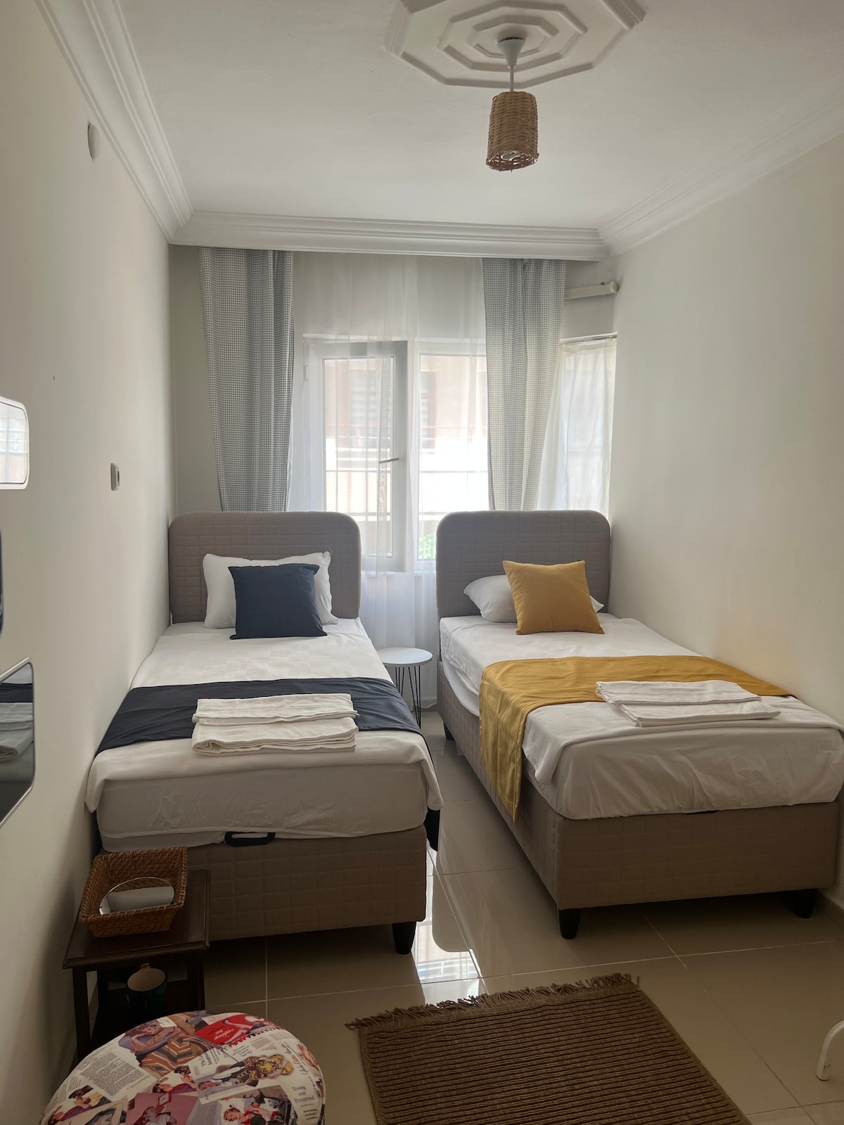 Salonda Tv de Netflix YouTube ve Wi-Fi bulunmaktadır. 2 adet çift kişilik yatak bulunmaktadır.4 kişinin altı rezervasyonda 1+1 şeklinde kullanılmaktadır.Mutfakta yemek yapmak için genelde tüm malzemeler bulunur. -Türk kahveleriniz bizden :) Konum itibariyle çok merkezi bir yerdedir. Bina aile apartmanıdır bu yüzden gece yüksek ses olmaması gerekiyor.Sigara sadece mutfakta içilebilir. Temiz bırakılması öncelikli talebimizdir. Lütfen ev kurallarımıza uyacaksanız rezervasyon isteği gönderiniz.