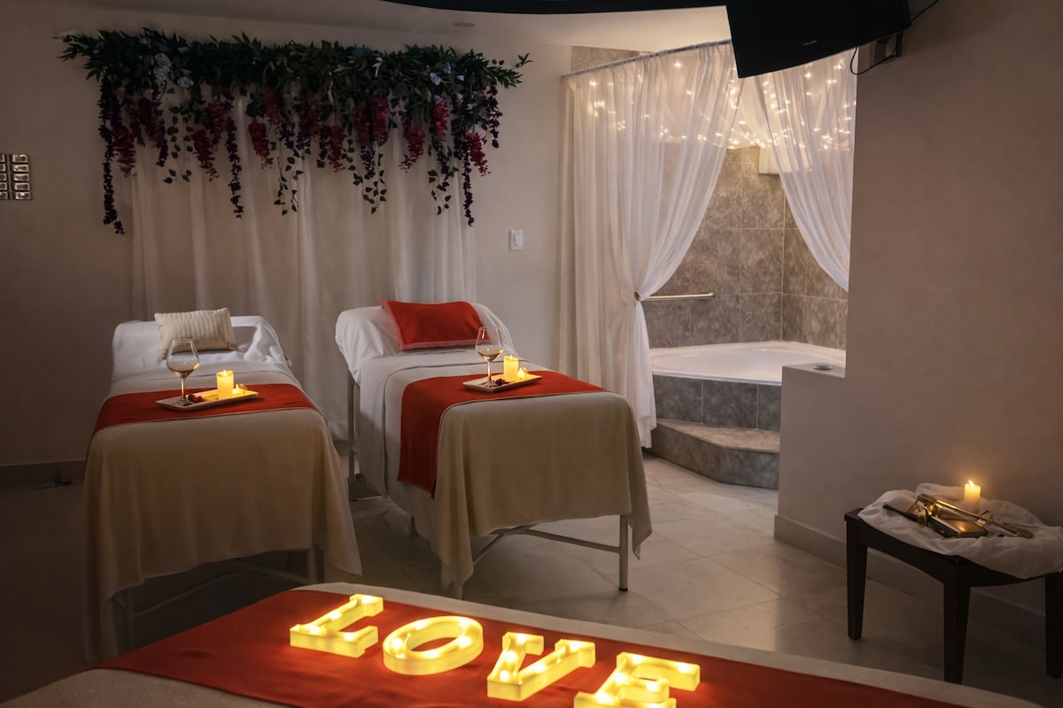 LOVE SPA, una experiencia creada para parejas que desean relajarse, reconectar y vivir un momento verdaderamente especial, ofrecemos una nueva forma de disfrutar el spa en un ambiente íntimo, privado y cuidadosamente diseñado. Durante esta experiencia, ambos disfrutarán de un circuito de relajación profesional que combina tratamientos faciales, masajes corporales, aromaterapia y jacuzzi, finalizando con tiempo exclusivo para ustedes en una habitación romántica especialmente decorada.