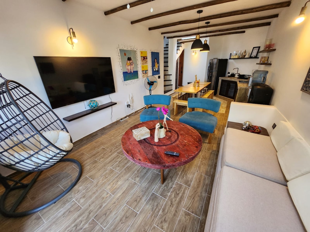 Este elegante departamento de 1 dormitorio en Tonsupa es el refugio perfecto para unas vacaciones junto al mar. Con un diseño moderno y acogedor, ofrece una sala de estar luminosa, cocina totalmente equipada y un dormitorio cómodo con cama queen size. A solo unos pasos de la playa, disfrutarás de su proximidad al océano. Ideal para relajarte, este espacio combina confort y estilo en un entorno idílico. ¡Ven y vive una experiencia costera romántica!