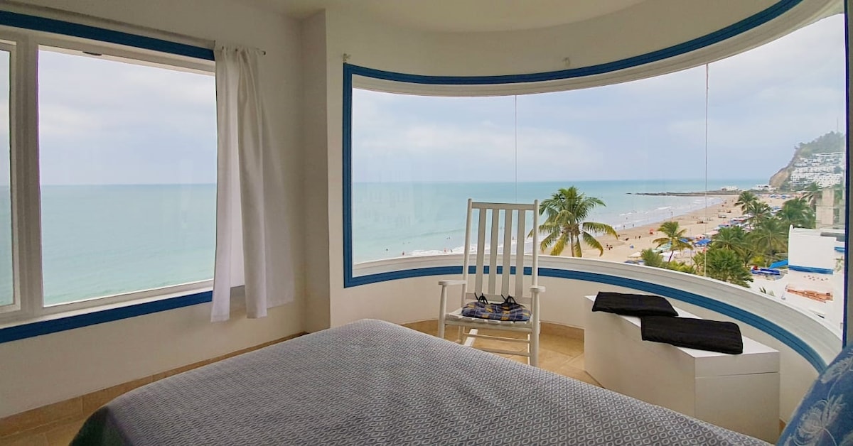 Descansa frente al mar 🏝️en Tonsupa: Apto moderno con Wi-Fi Salida fácil y privada a playa en menos de 3 minutos, cuenta con piscina de adultos y niños. Carpa con mobiliario exclusivo del apartamento en el área social del jardín, cocina completa con electrodomésticos y su menaje, Comedor para 8 personas y comedor de 4 personas en el balcón con vistas al mar, Sala de TV, Tres dormitorios el principal con baño privado y dos habitaciones con un baño completo. Playa tranquila lejos del ruido.