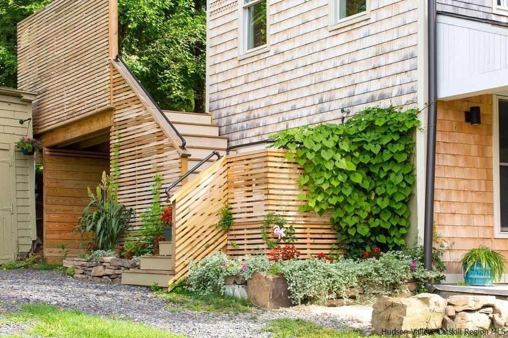 Awaken to an idyllic lake view through a timber-framed glass facade. Acclaimed social realist painter Reginald Marsh's family estate is known to be unique for Woodstock with its ball shaped junipers, a pond that brackets the house, expansive lawns, a gathering of birches and 100 year old cone shaped cedar trees. In short walking distance to the center of Woodstock the secluded setting with a private waterfall bordering a public preserve as well as the attention to architectural detail is unique.