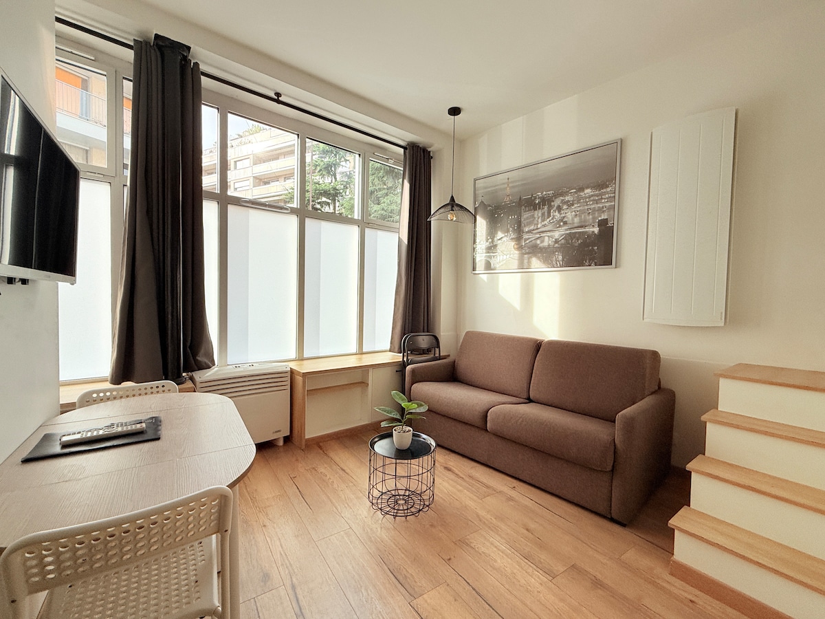 Studio de 20m2 avec jardin, indépendant au rez-de-jardin d’un villa . Cuisine équipée avec tous les ustensiles utiles pour cuisiner. Salle de bain séparée avec grandes serviettes. Grand lit (160x200), deux fauteuils avec une table. Possibilité de stationner dans la rue ! Un chargeur 7,5KWh pour la voiture électrique. Wifi fibre + Smart TV ! L'appartement est non fumeur. Nous offrons le thé, le café ainsi que le sucre, et spécialement les nouilles instantanées pour votre petit déjeuner !