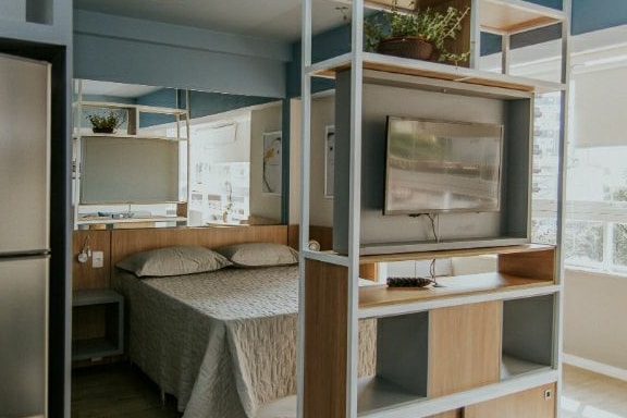 Studio completo com academia área pra churrasco sala cinema lavanderia com lava e seca e sala de reuniões. Tudo bem pertinho supermercado barzinhos, padaria,pizzaria farmácia ,posto de gasolina salões de beleza e restaurante. você pode se locomover a pé tranquilamente pelo centro sem precisar de carro.