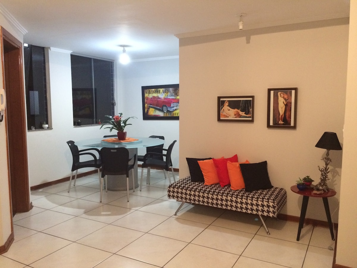 O apto fica localizado no centro de Poços, em uma das ruas principais. Pode fazer tudo a pé, ao redor se encontra supermercado, padaria, restaurante. O apto tem 1 quarto com cama queen e 1 sofá cama na sala que cabem duas pessoas confortavelmente. Fornecemos roupa de cama, toalhas não. Cozinha com Cooktop, microondas, geladeira, utensílios básicos e 1 vaga de garagem coberta. Em feriado e final de ano min 2 - 3 diárias. Será um prazer receber você!