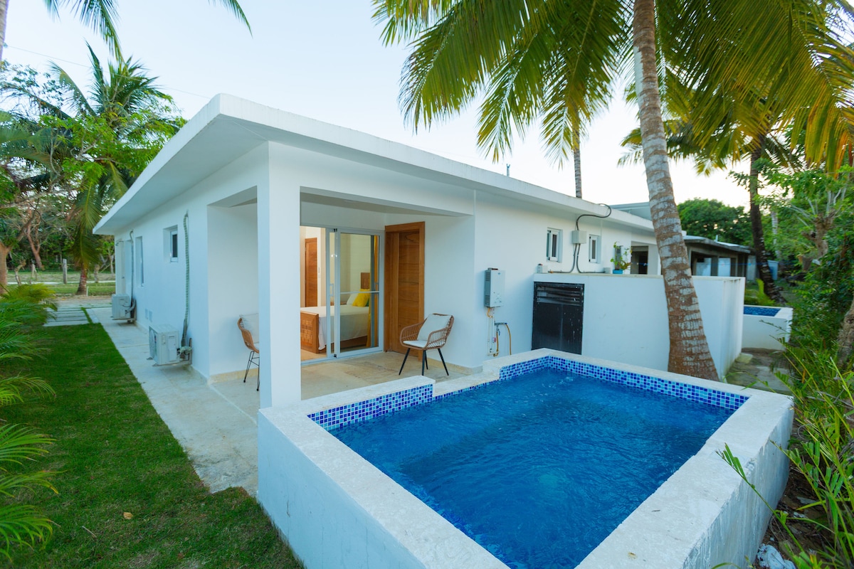 Bienvenidos a nuestro refugio tranquilo rodeado de naturaleza. Cuenta con piscina con cómodas sillas de sol y disfruta también de una bañera ideal para desconectar. Columpios, un gazebo con mesa de billar para compartir en familia o con amigos. A solo 45 minutos de Río San Juan, podrás explorar Playa Grande, vivir la aventura en Laguna Gri-Gri y descubrir lugares como el Parque Nacional El Choco yCuevas de Cabarete. Además, encontrarás excelentes restaurantes como, Ola River y D’ Papio.