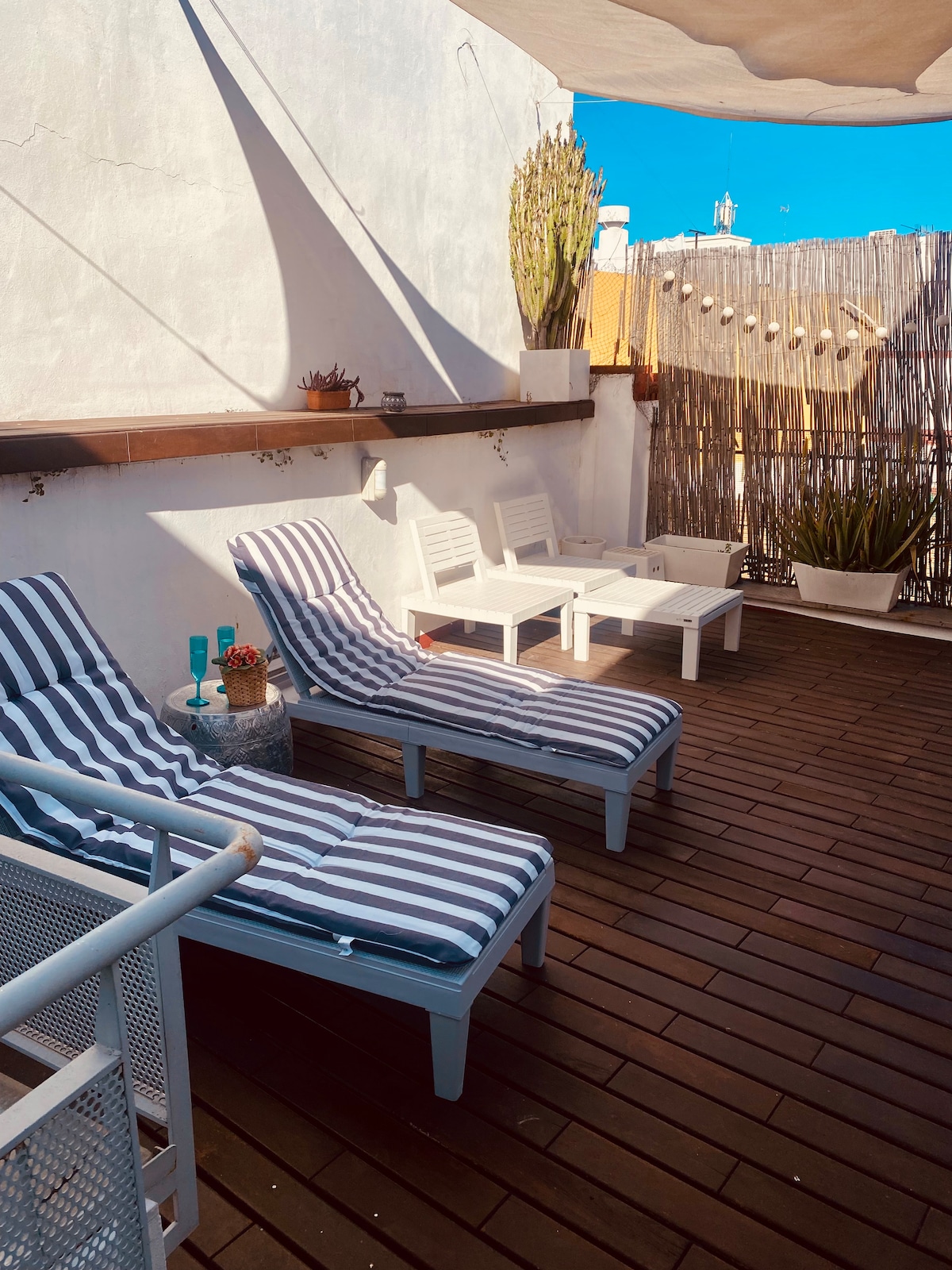 Due to the Covin-19, we’re taking extra care to disinfect the house between reservations. We have a private entrance to the house. In order to follow the social distance rules and avoid person to person contact we offer self check-in system. Sit down to a complimentary breakfast on the first morning staying in this fully refurbished property. Later, read a book in the hammock on 1 of the tranquil terraces. It also benefits from plenty of natural sunlight and fine exposed stonework. Our beautiful house is divided into 3 floors. On the first floor we have: -Bedroom 1 with king size bed (1.50m x 1.90m) -Generous open plan modern kitchen dinner and lounge area which is great for family/friends entertaining and hang out together. We have brought the old walls and you can see the unique and original bricks of the house. It has a pleasant space that will make you feel at home. -Bathroom with a walk-in shower. On the second floor we have: -Two bedrooms. Bedroom 2 with a king size bed (1.50m x 2m) floor to ceiling balcony overlooking the famous street, Calle Castilla, table and two chairs. Bedroom 3 which has 2 single beds (0.90m x 2m). -Fully equipped bathroom with a walk in double shower. -Laundry cupboard with washing machine, cleaning utensils and products. From this second floor we have access to one of the beautiful terraces from where we access to the third floor which is our gorgeous very large roof terrace, one of the amazing points of this property, the highlight! With a seating area where you can enjoy a well-deserved rest al fresco, enjoy a nice breakfast or a great dinner after visiting the city. Please note the outdoor cushions are only for non winter use due to the slight possibility of rain and the humidity caused by temperature change from day to night. We will do our best for you to have a pleasant and comfortable stay in Seville. Guests will have access and exclusive use of the whole house and terraces. Free wifi. In the price is included everything you need to make a lovely breakfast, coffee, milk, bread, jam, butter and some fresh fruit. Even though I am originally from Seville and I am passionate about my city, I moved to Madrid in 2005 from where I am managing bookings. When you book our apartment we will keep in touch by phone, email, text messages or whatsapp While we try to be flexible for your check-in and check-out time, check-in does need some advance co-ordination as we need for someone to be there to welcome you when you get to the apartment. I do go very often to Seville, so I may be the one to welcome you to the house, if not we have a great team of assistants to meet you at the house door. We are always happy to help our guests with any enquiries about Seville and will make our best to make a very pleasant and welcome stay. You can always contact me, I am only a phone call away and my mobile is on 24/7. I have friends and family just around the corner in case o any emergency. The riverside setting adds to the enchantment of the Triana neighborhood, where this home is located. Steps away are the historic Callejón de la Inquisición and San Jorge Castle. Sample delicious tapas in the local bars to a flamenco soundscape. Check in time will be between 15:00 and 22:00 Check in between 22:00 and 00:00 will have a extra charge of 15€, payable on arrival. Check in after 00:00 extra charge 30€, payable on arrival.