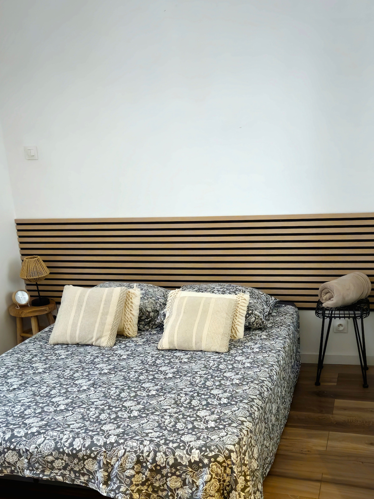 Vous profiterez d'un belle appartement lumineux tout équipé(Climatisation, internet, électroménager,serviettes) Les couchages sont au nombre de 2 avec un couchage 2 places dans le salon ainsi que d'une suite parentale avec son lit en 160 et son matelas Bultex. Vous bénéficierez également d'une salle de bain avec douche à l'italienne et dressing. Des places de stationnements gratuites se trouves en face du logement ainsi qu'une boulangerie à moins de 20 mètres En vous souhaitant un bon séjour !
