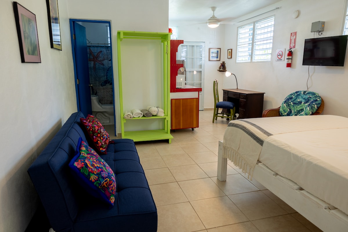 We are a Fun, Beach Caribbean property full of Tropical Colors, with a great location and lots of good food. Our Studios are all about location on a budget ,the ideal place to stay if you are looking for a place you can prepare some light meals with a small kitchenette , if you want to walk to the beach, to local restaurants, enjoy music and island vibe , departure point for tours to the bioluminescent bay, walking to Sunbay Beach if you want to be in the center of it all, this is it!
