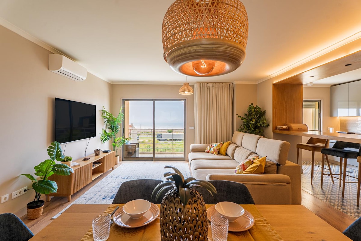Simplifique neste espaço tranquilo e de localização central. Apartamento recém contruído e completamente equipado , situado a 800 metros da praia. Localizado numa zona ideal para crianças, encontrará uma piscina no condomínio fechado e um lugar de estacionamento dentro do prédio. A pensar no seu conforto o apartamento está equipado com ar de condicionado, wi-fi entre outros. Graças as suas amplas e grandiosas janelas o apartamento é bastante luminoso e arejado. Reserve já e disfrute