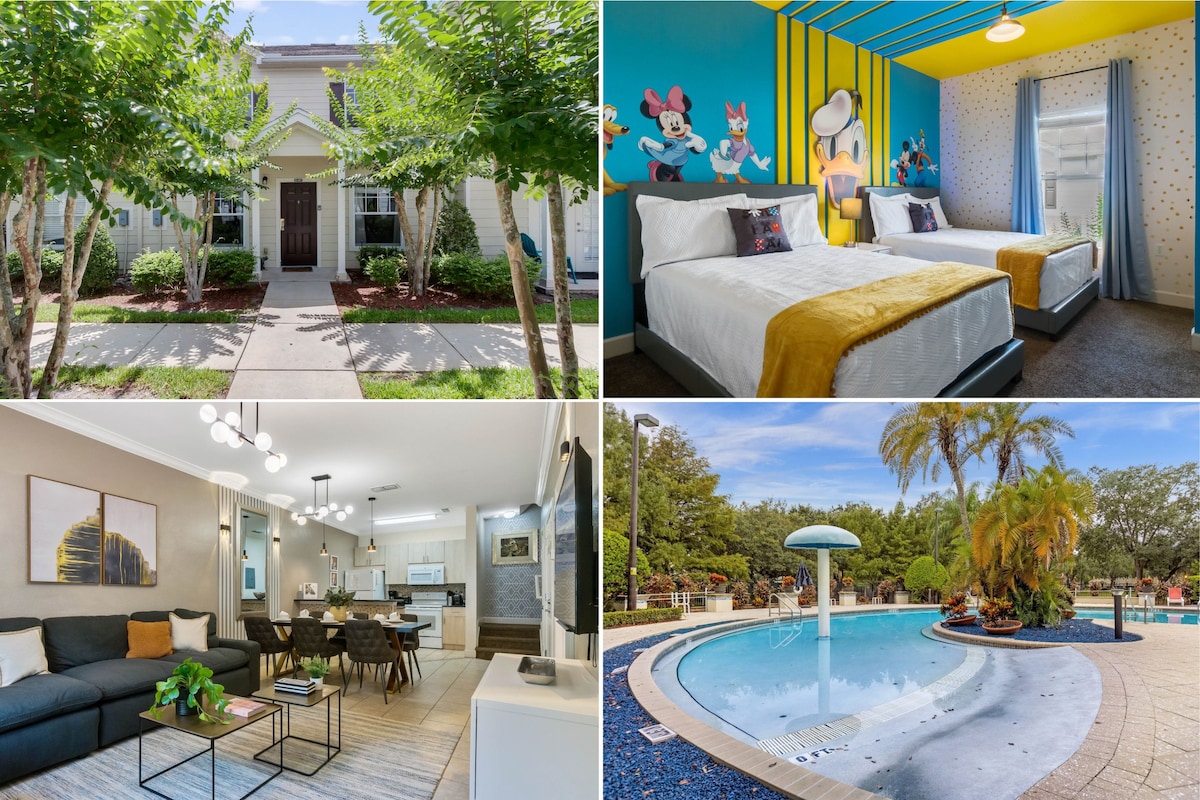 迪士尼附近的私人泳池5卧室联排别墅,带主题房